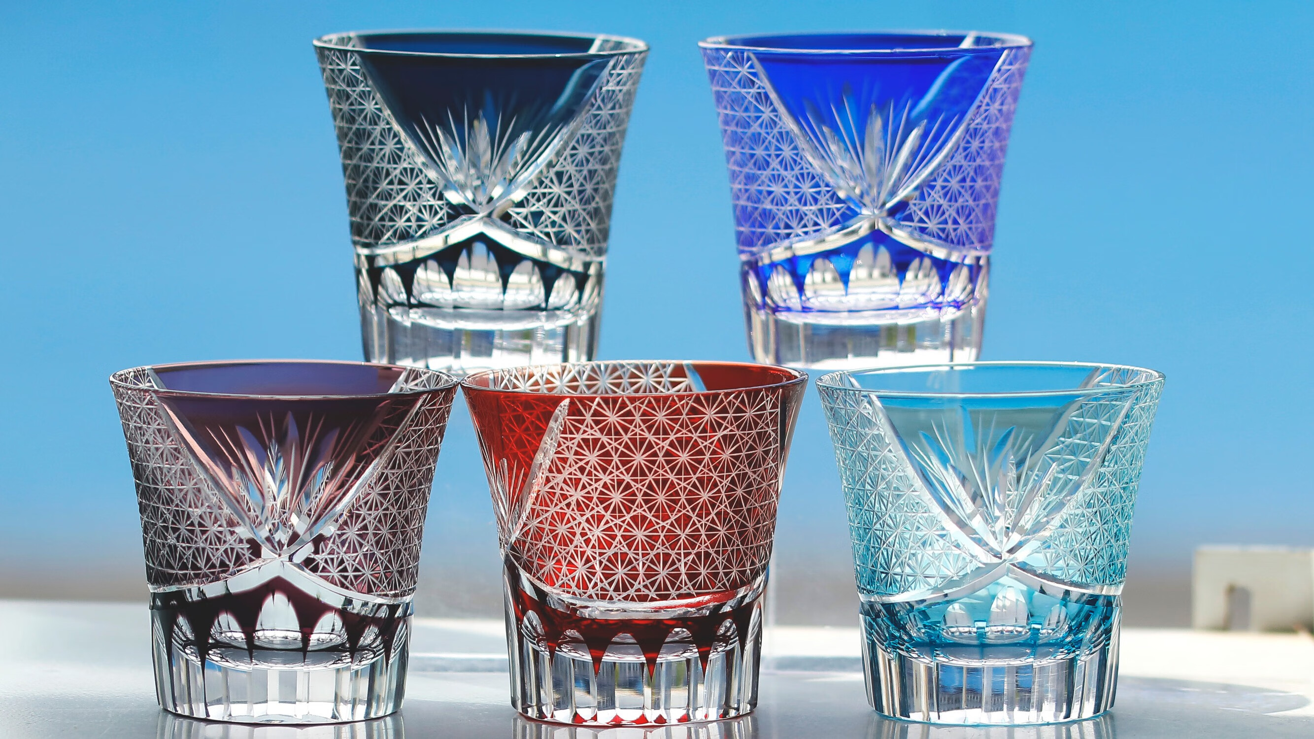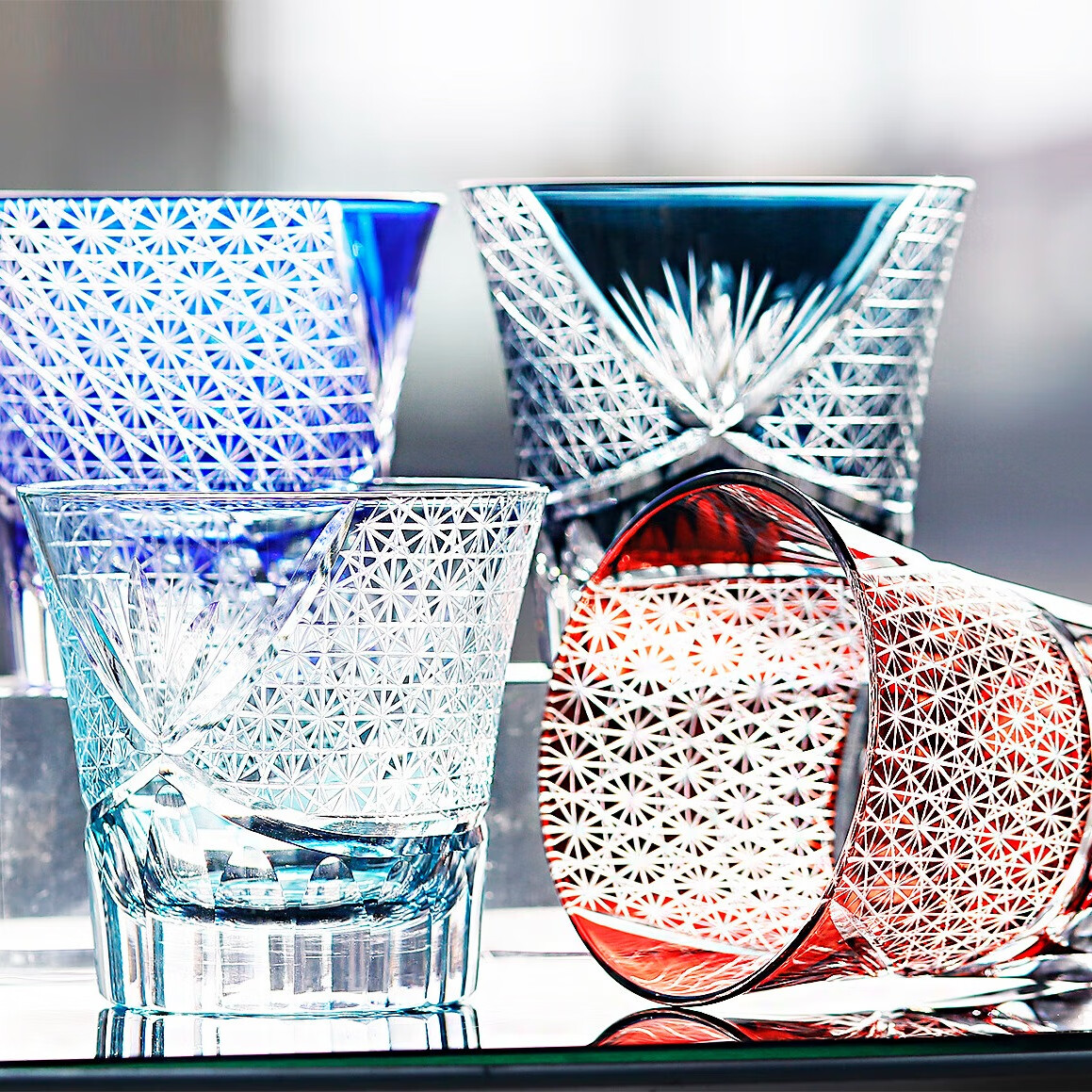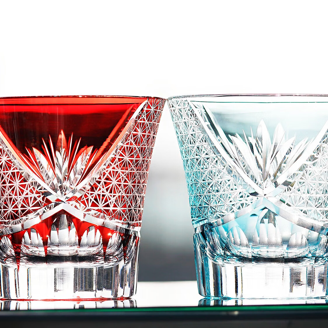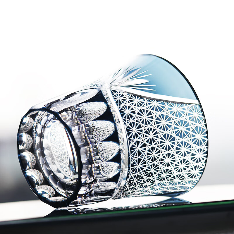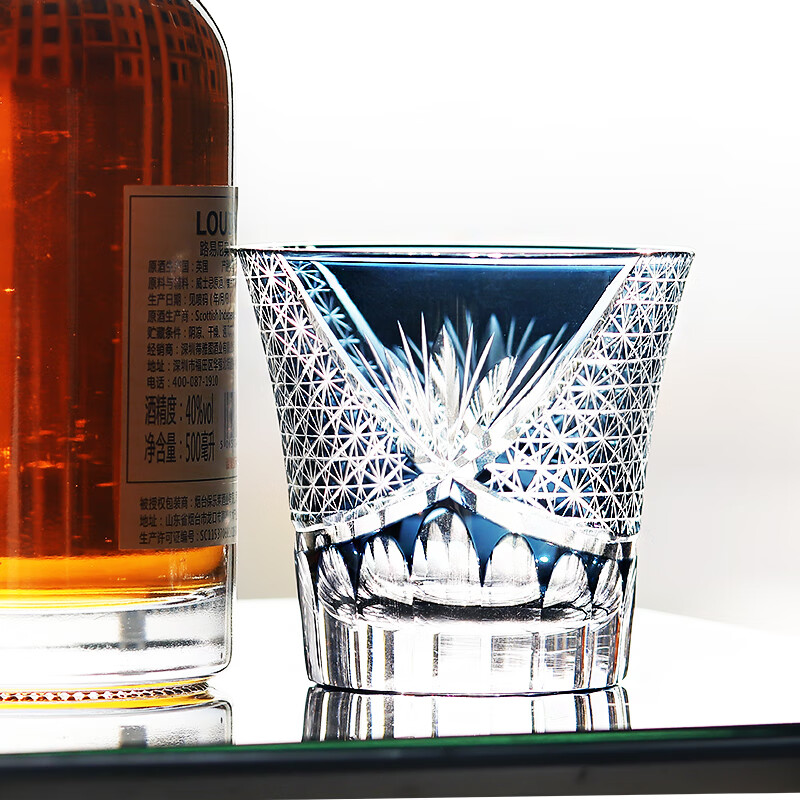 Chizhi Edo Kiriko Bohemian whiskey cup handmade high-quality beer glass wine glass gift box cup glass purple chrysanthemum 220ml 1 piece