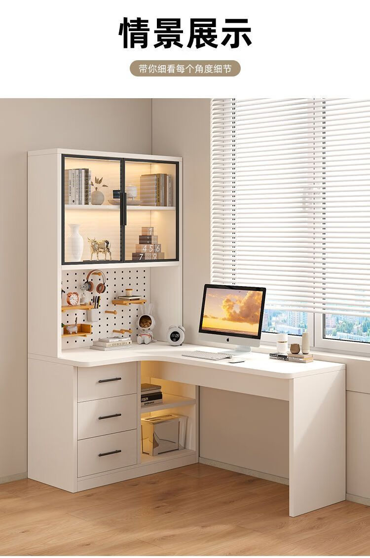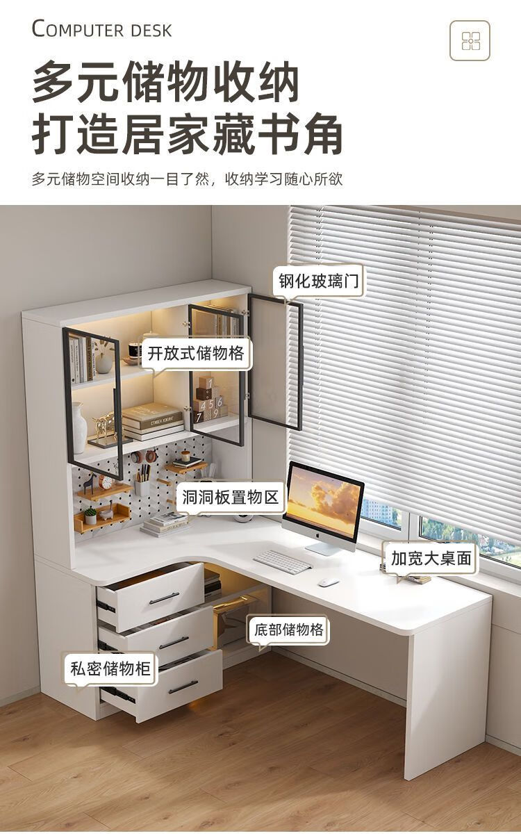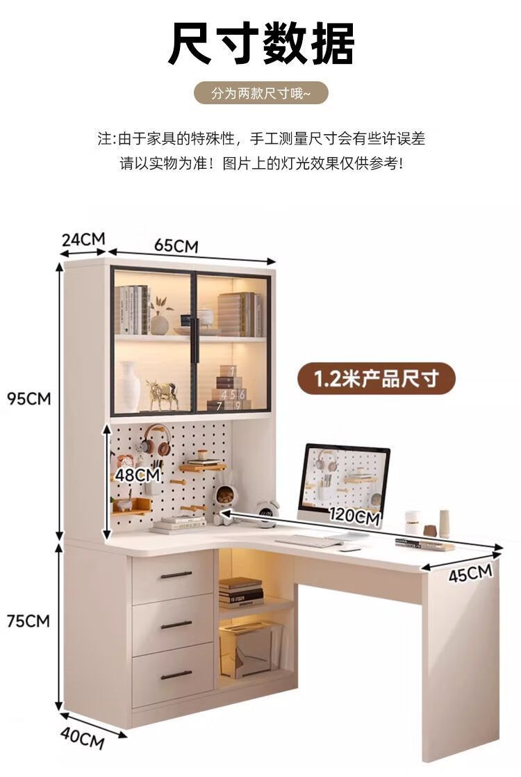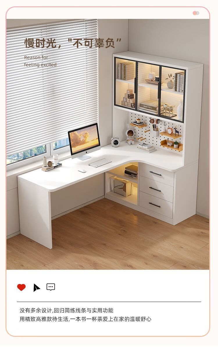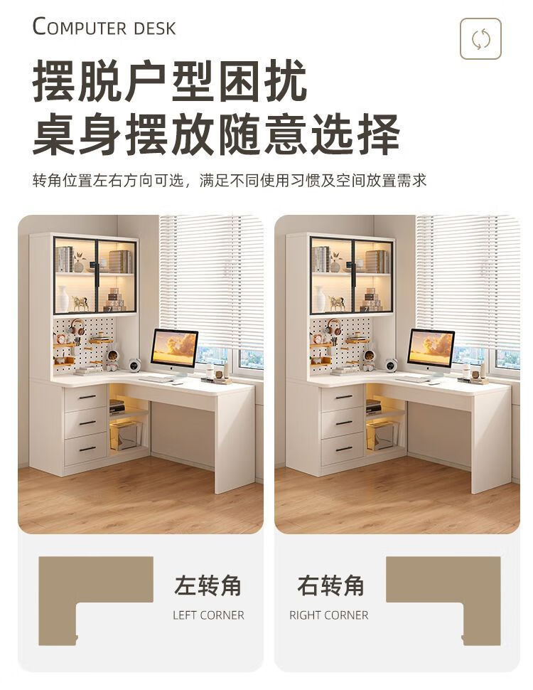 JEONZURU corner desk home desk bookshelf integrated wall table bedroom student simple study table solid wood writing desk cream white + left bookcase length 120*65*170cm (solid wood particle board)