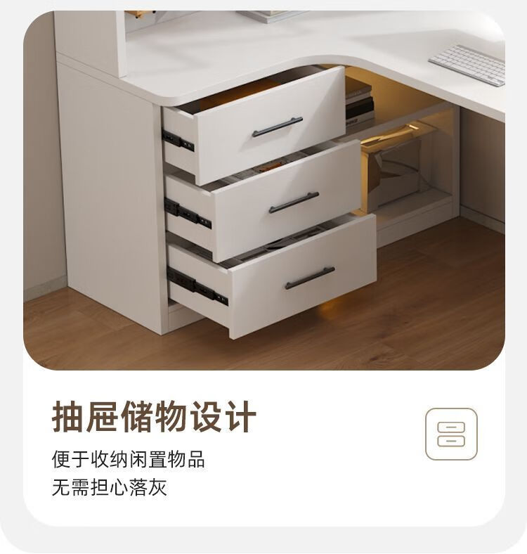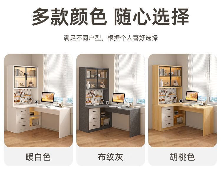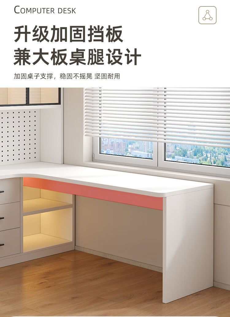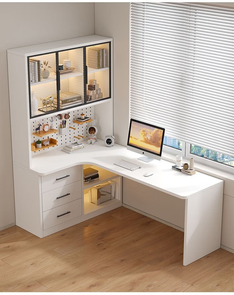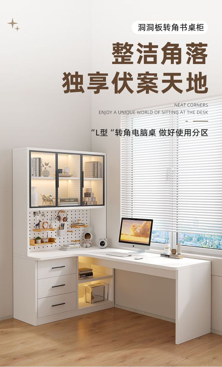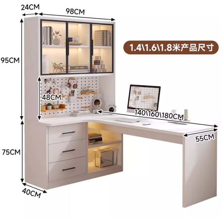 JEONZURU corner desk home desk bookshelf integrated wall table bedroom student simple study table solid wood writing desk cream white + left bookcase length 120*65*170cm (solid wood particle board)