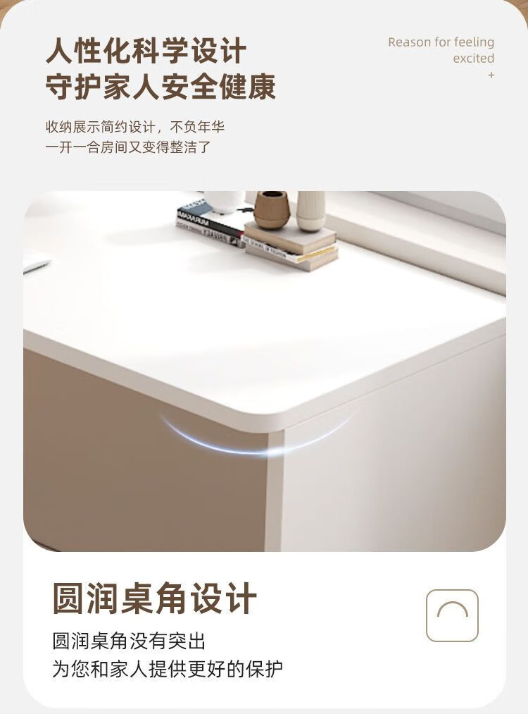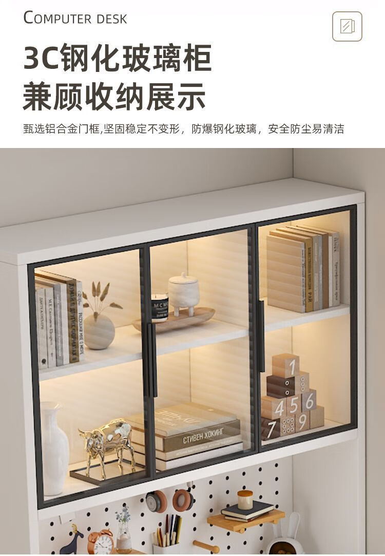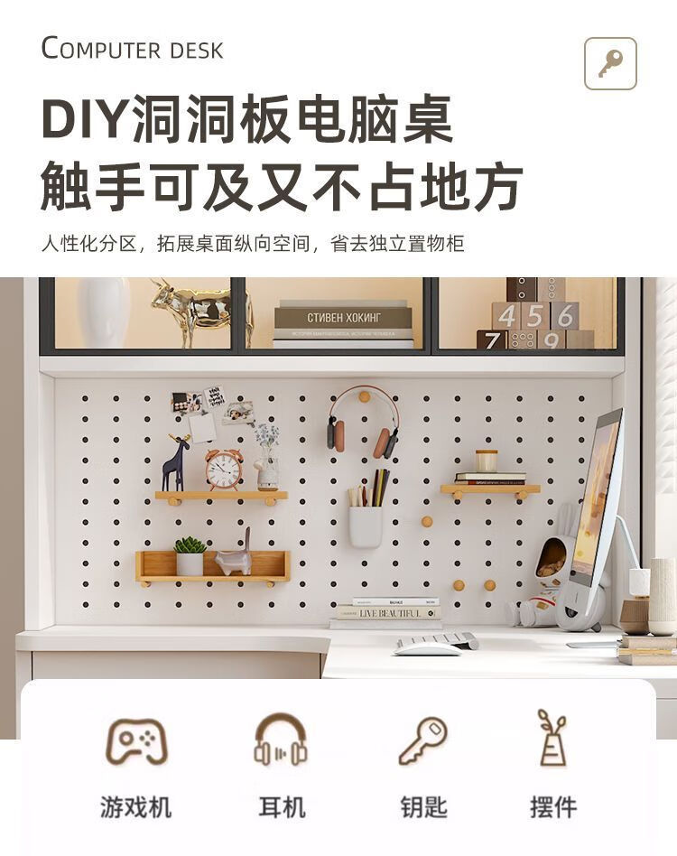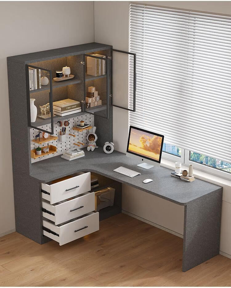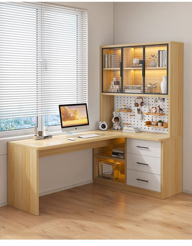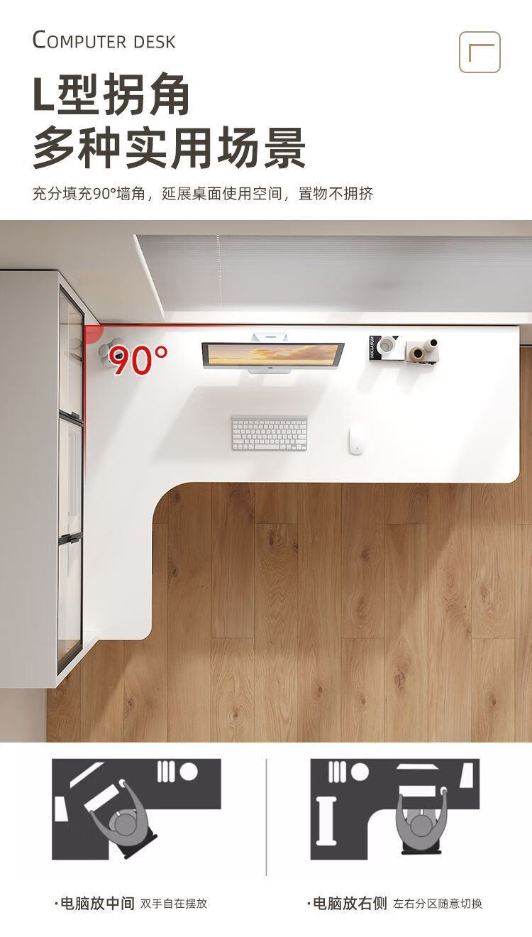 JEONZURU corner desk home desk bookshelf integrated wall table bedroom student simple study table solid wood writing desk cream white + left bookcase length 120*65*170cm (solid wood particle board)