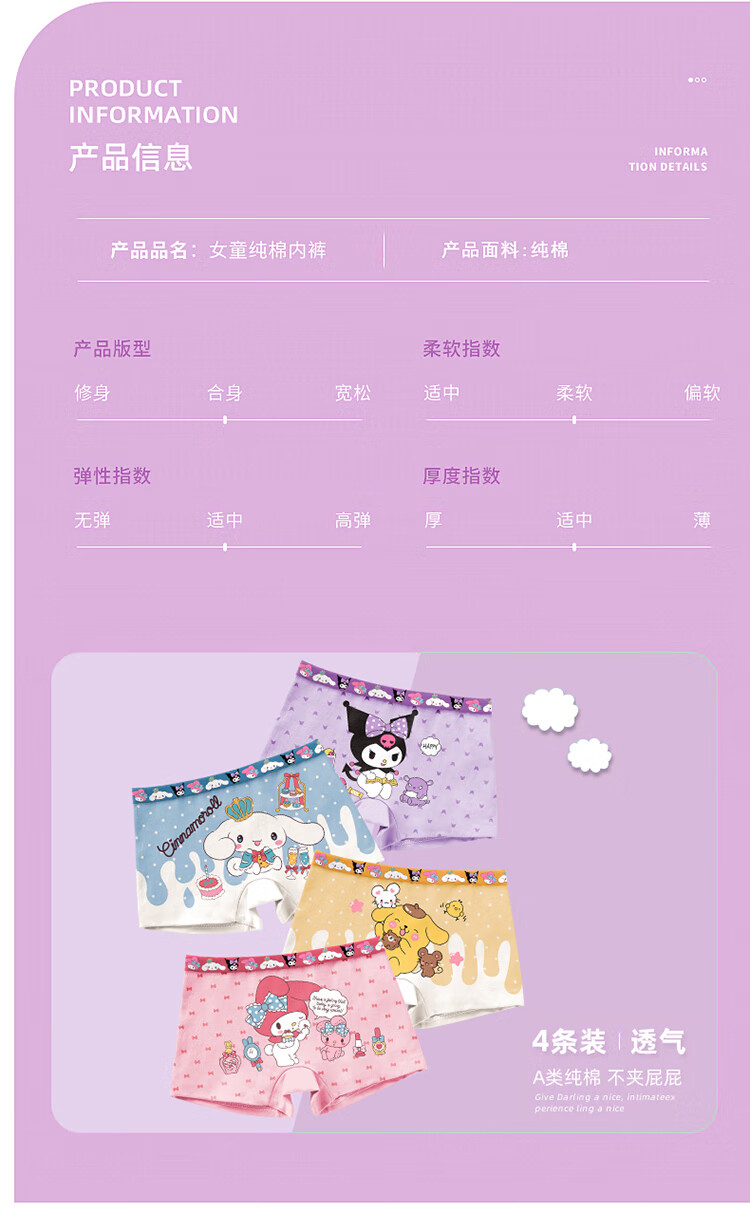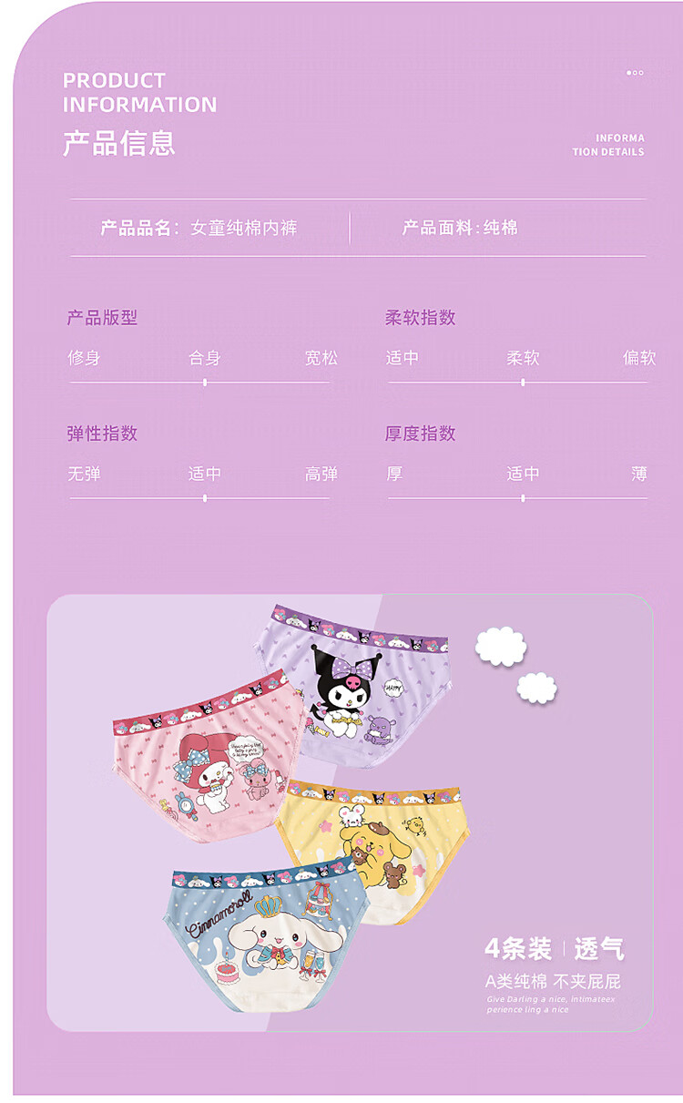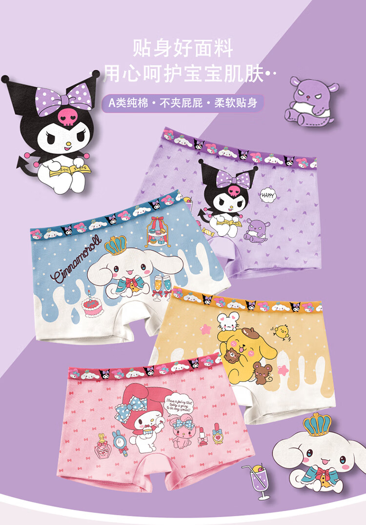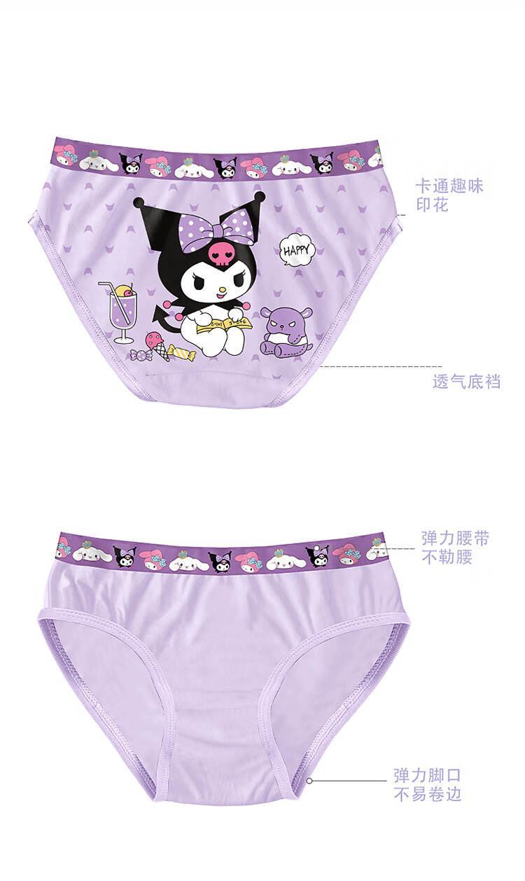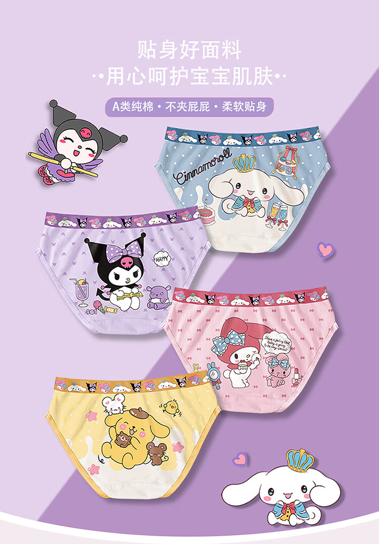 Kuromi children's underwear for small, medium and large children breathable girls underwear triangle type A antibacterial girl baby underwear 087 (type A four pack) 4 pieces M size (recommended weight 28-37Jin Jin equals 0.5 kg)