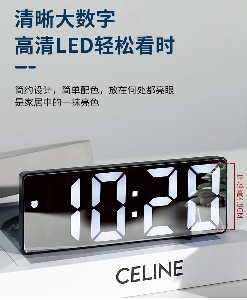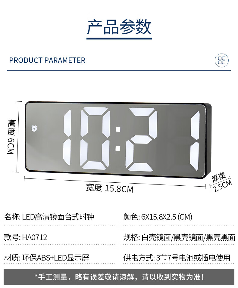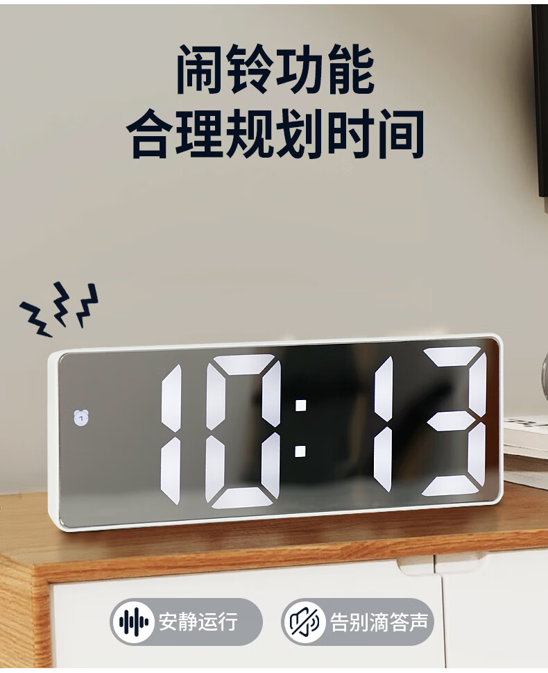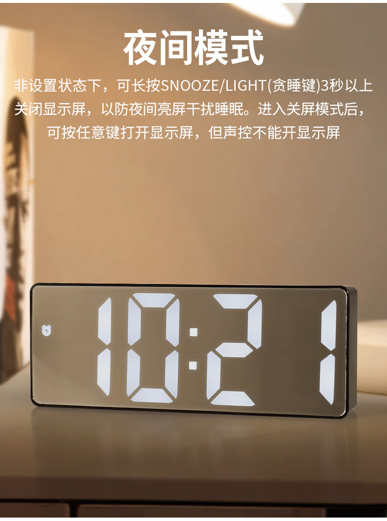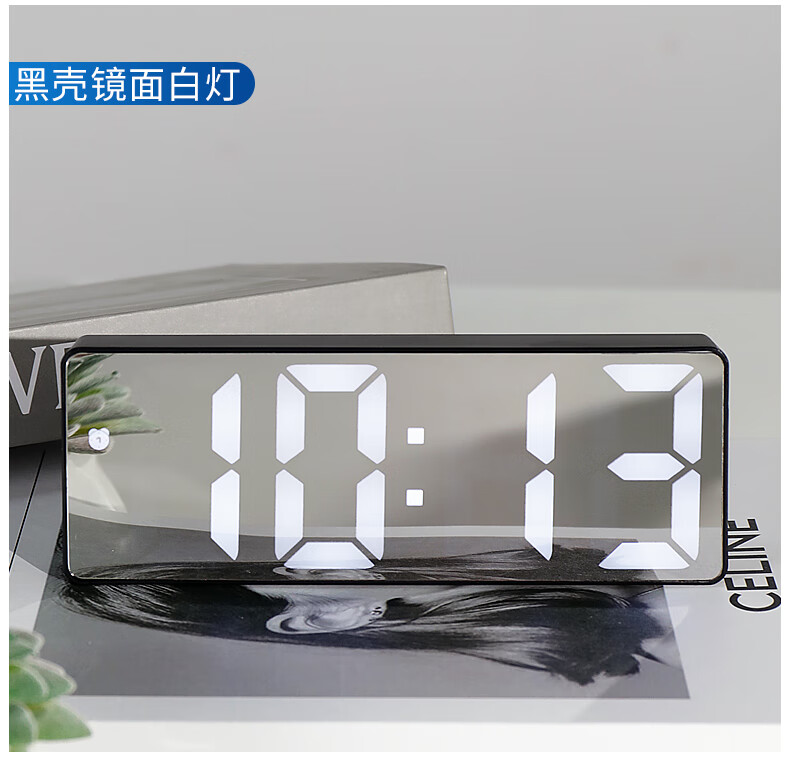 Hanshi (Hense) LED mirror voice-activated alarm clock for students and children to wake up artifact desktop electronic alarm clock desktop clock high-looking student electronic clock small table clock HA0712 black shell mirror white light
