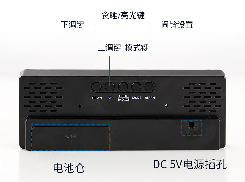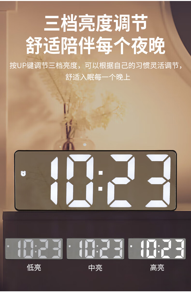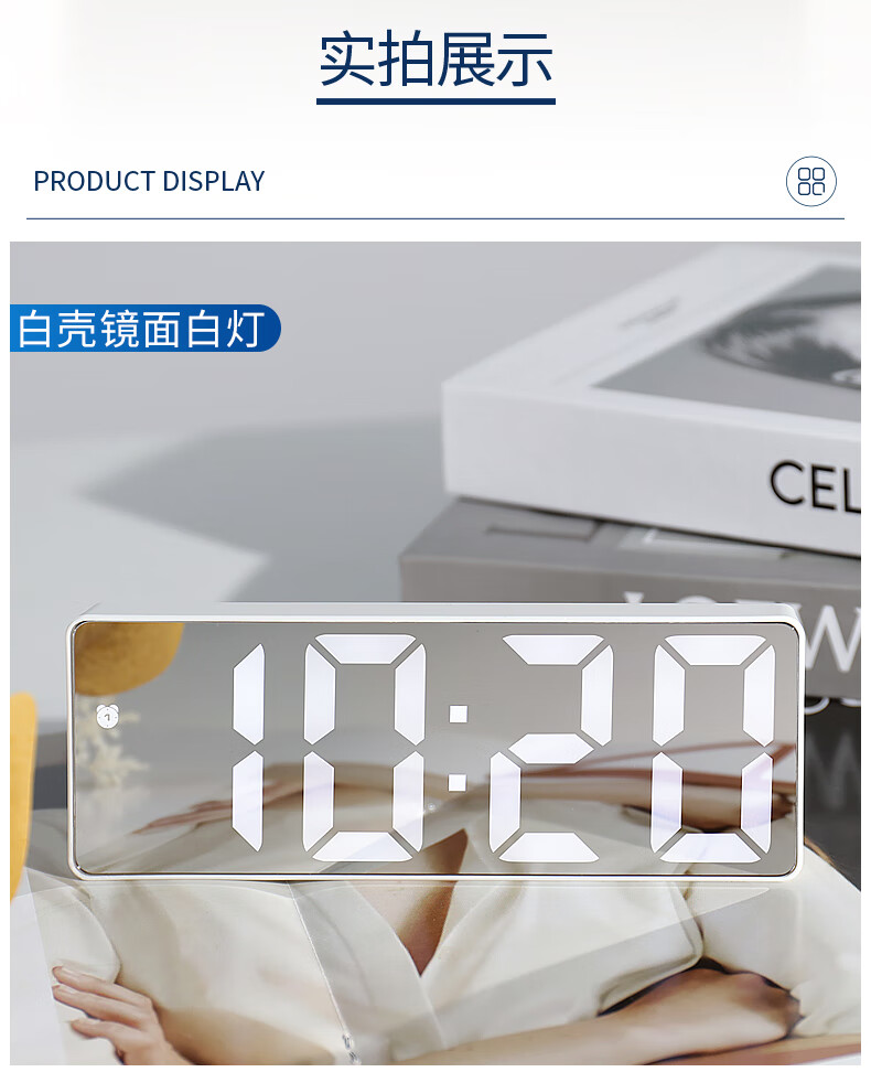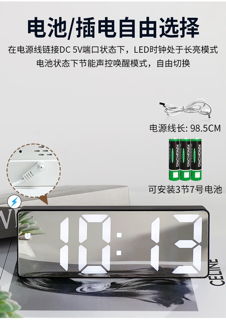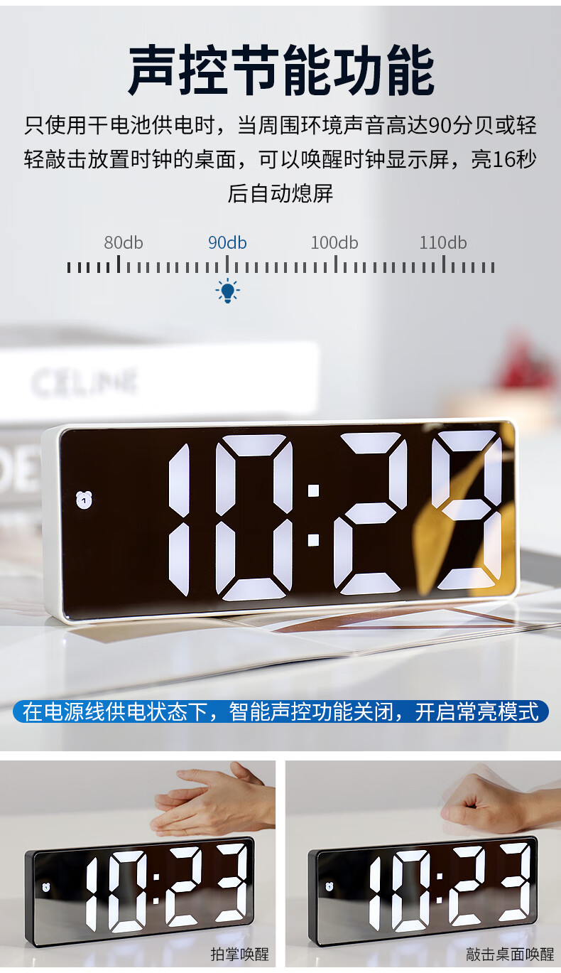 Hanshi (Hense) LED mirror voice-activated alarm clock for students and children to wake up artifact desktop electronic alarm clock desktop clock high-looking student electronic clock small table clock HA0712 black shell mirror white light
