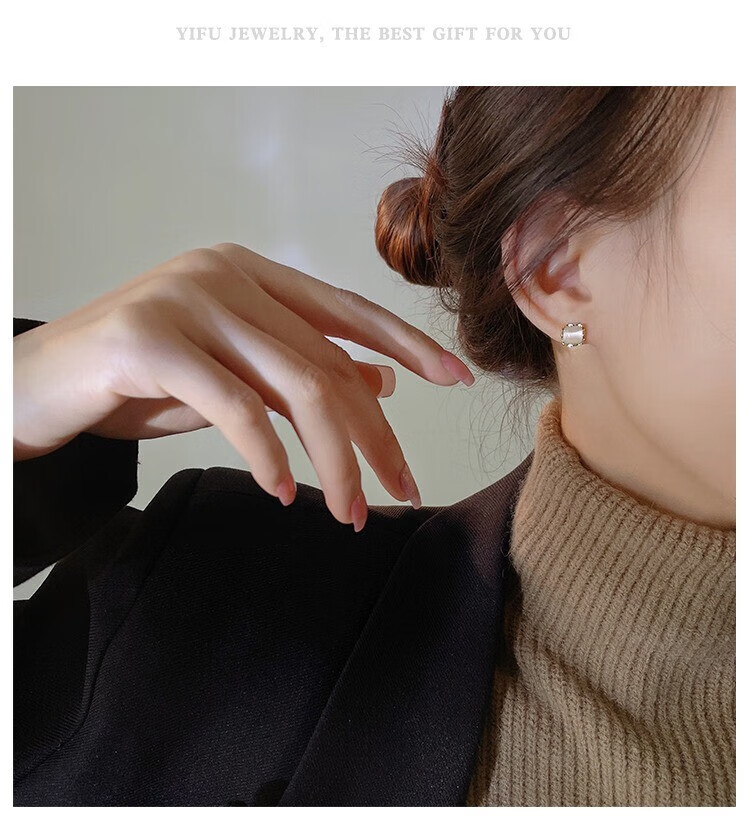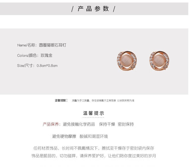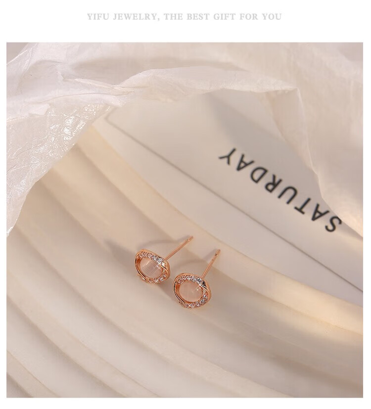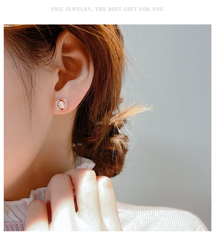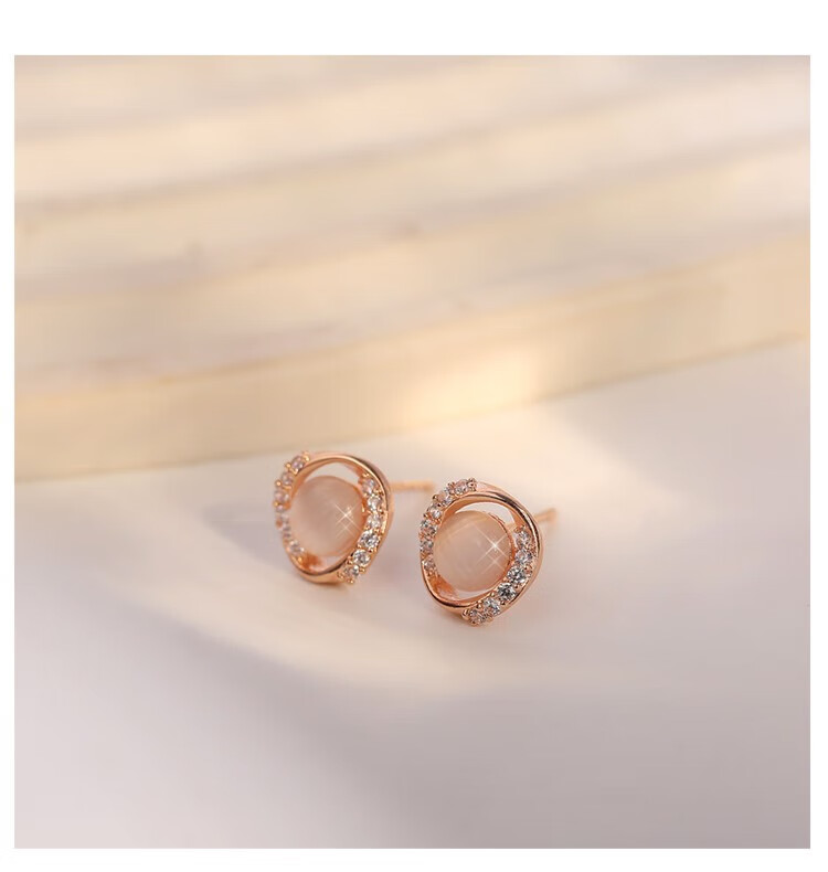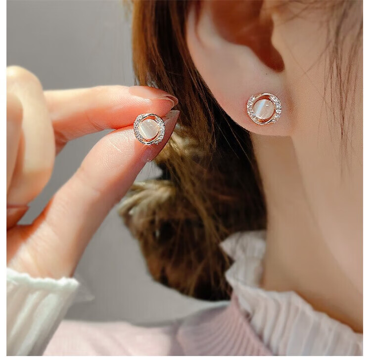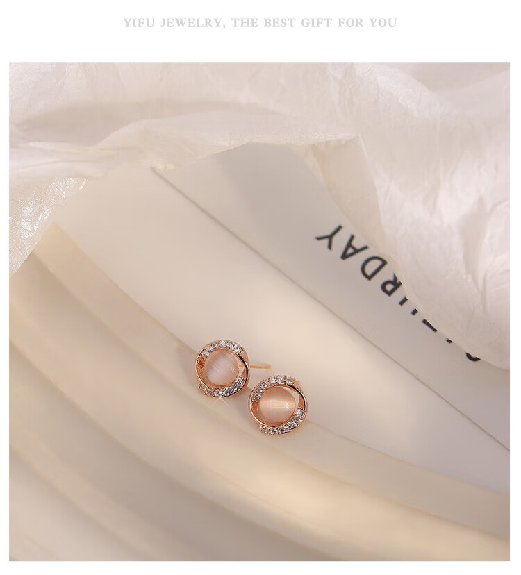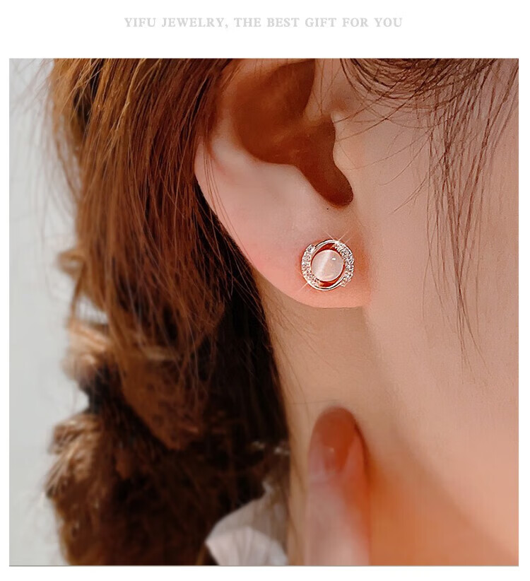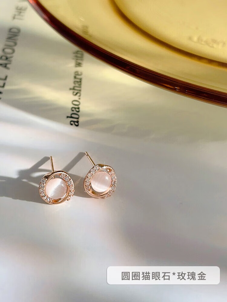 Miao Xiu Pure Silver Needle Earrings Women's Imitation Cat's Eye Earrings Women's Earrings Temperament Circle Exquisite Earrings Circle Cat's Eye Earrings - Rose Gold