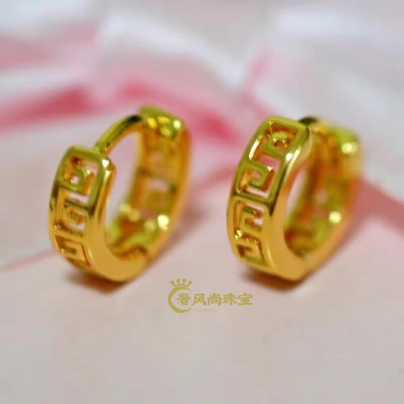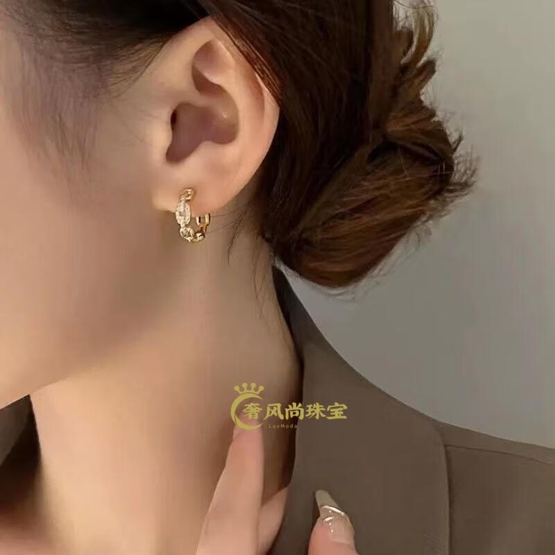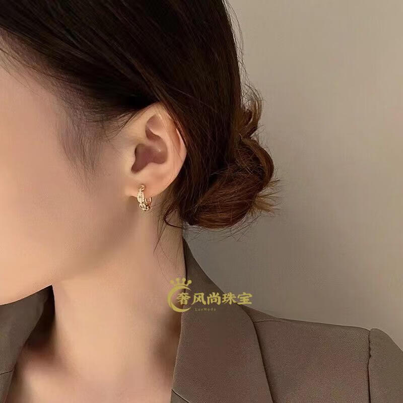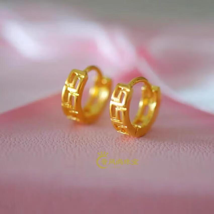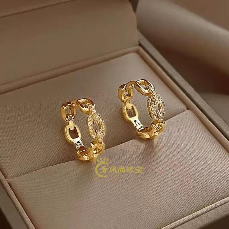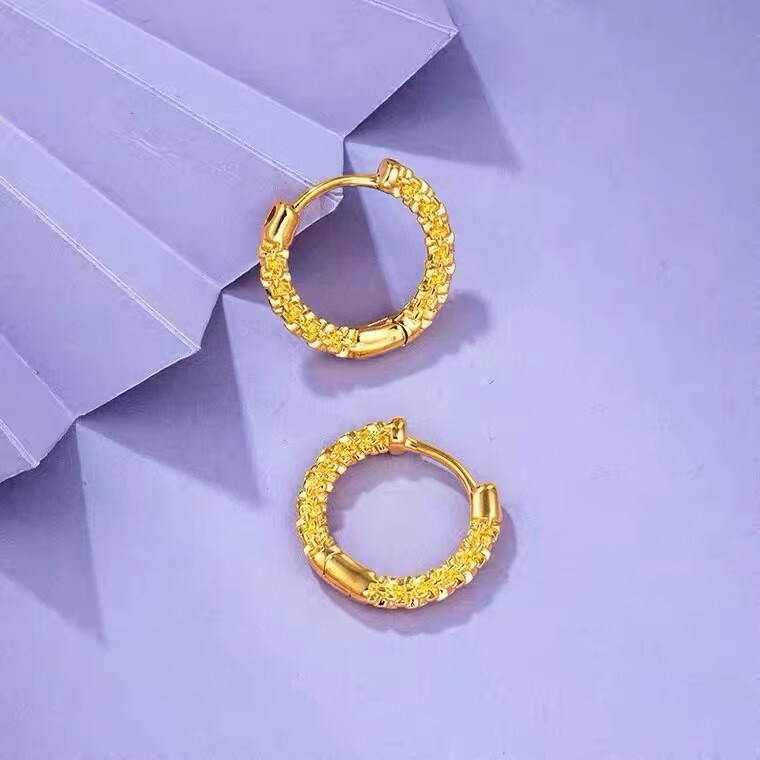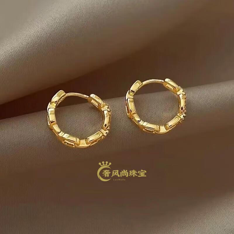 Fat Donglai's same style 18k color gold earrings, gold color earrings, gold retro hoop earrings for women, diamond earrings