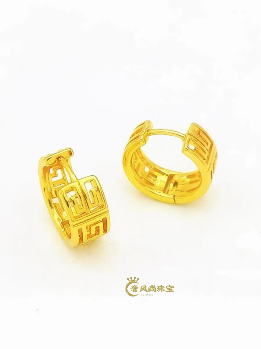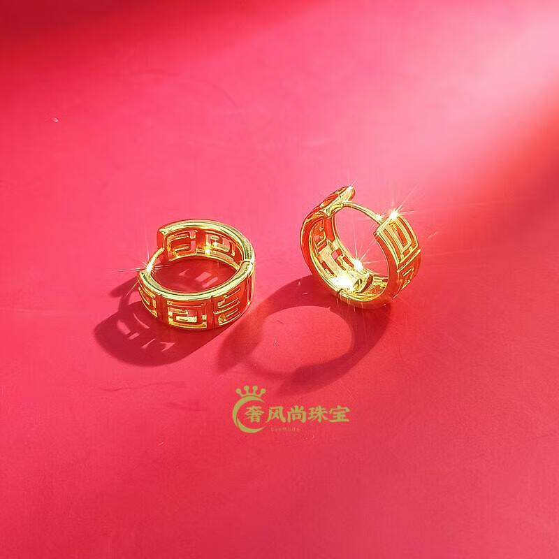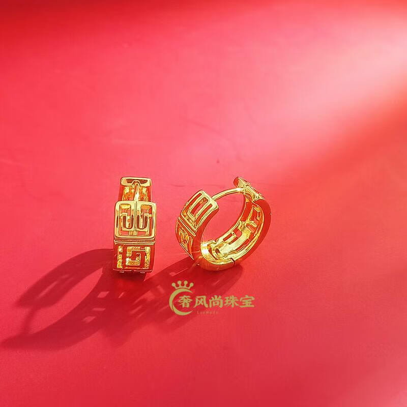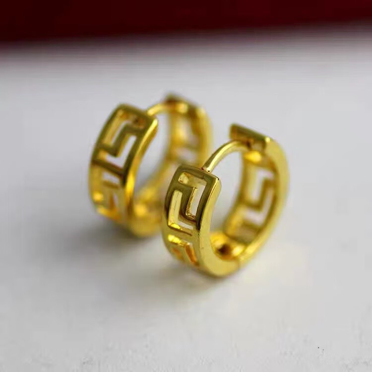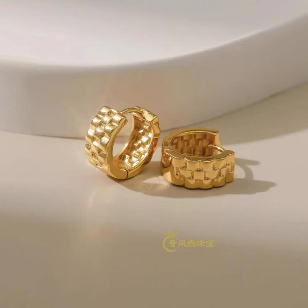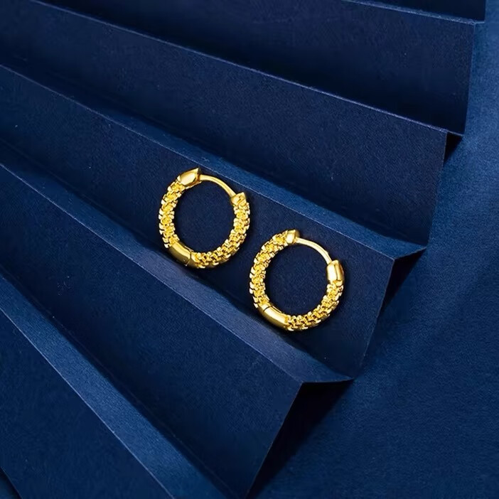 Fat Donglai's same style 18k color gold earrings, gold color earrings, gold retro hoop earrings for women, diamond earrings