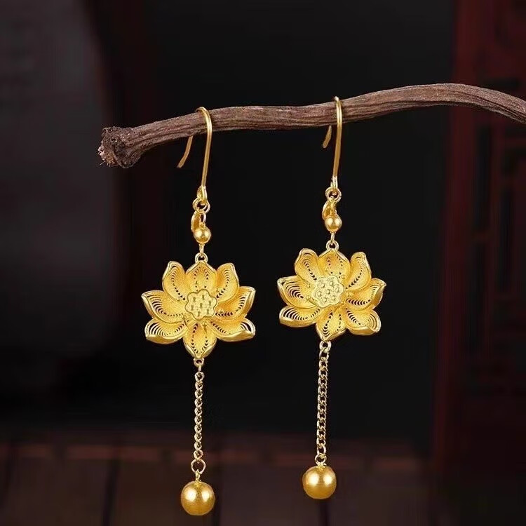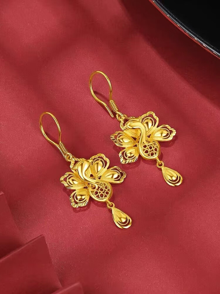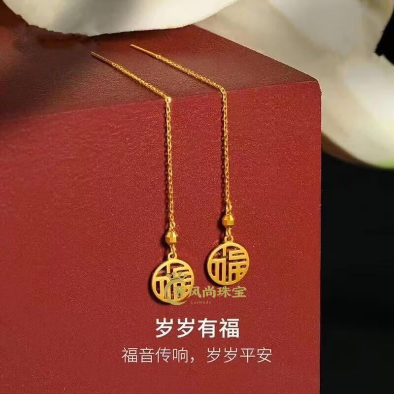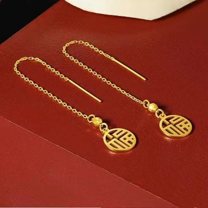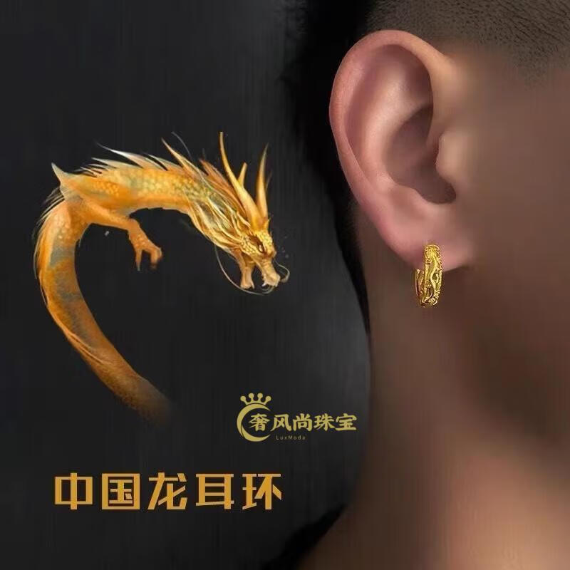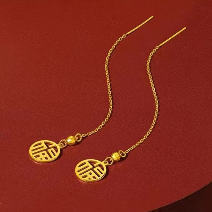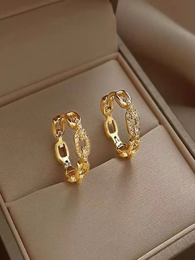 Fat Donglai's same style 18k color gold earrings, gold color earrings, gold retro hoop earrings for women, diamond earrings