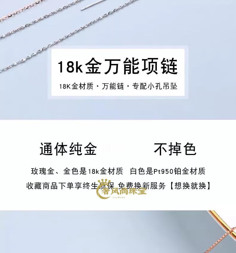 Fat Donglai's same style 18k rose gold necklace plain chain gold needle Chopard chain chain Au750 color 18K gold yellow Chopard/chain 2g x 45cm