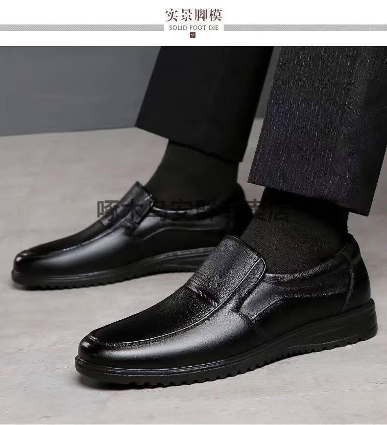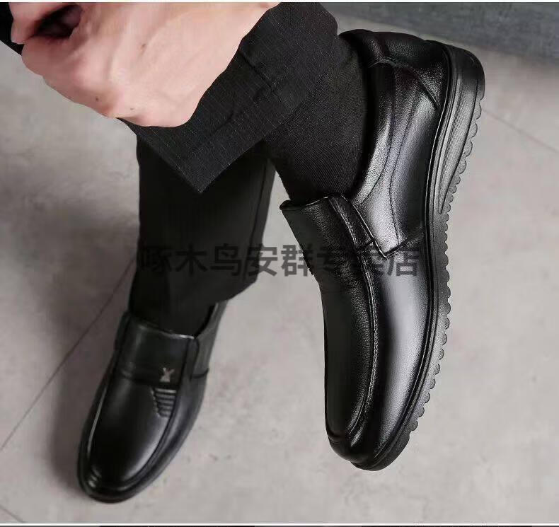 Woodpecker business leather shoes for men 2025 spring new middle-aged and elderly genuine soft leather men's leather shoes casual breathable non-slip dad shoes black flagship model 40
