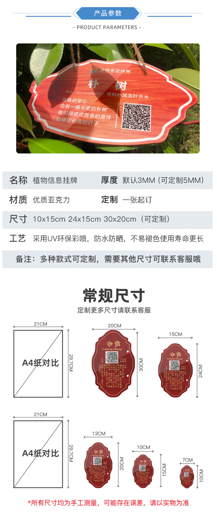 Customized acrylic tree sign, school park nameplate, flower, fruit tree, signboard, tree introduction, courtyard B&B, custom shot 24x15cm