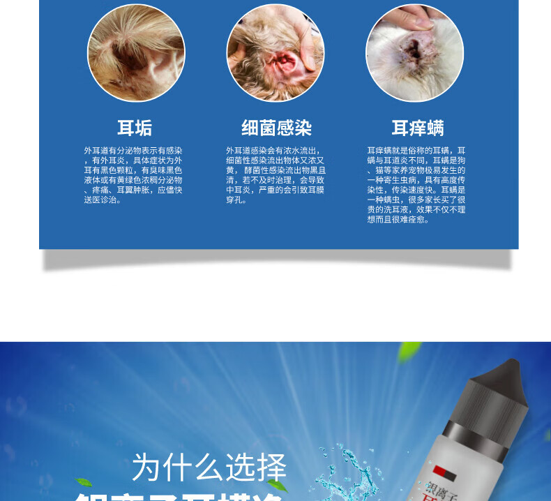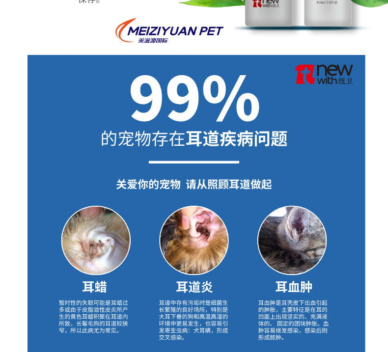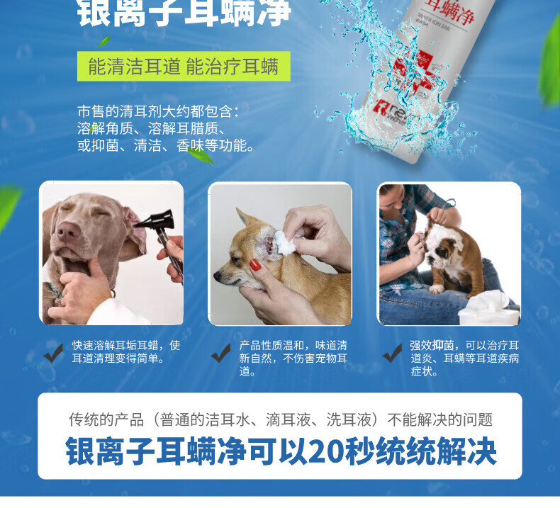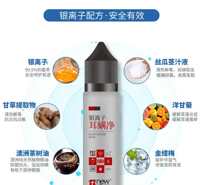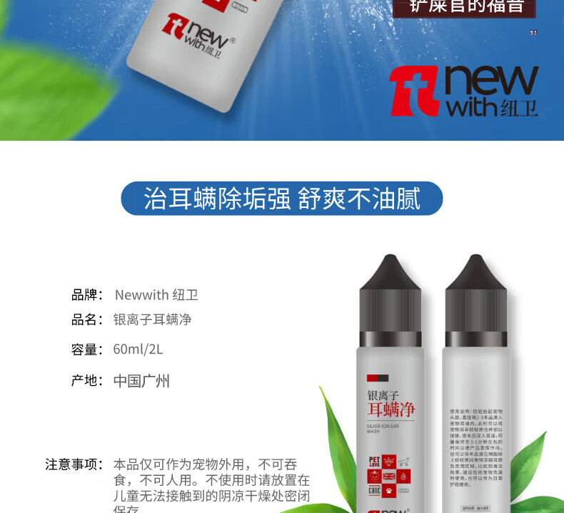 Newway Silver Ion Ear Mite Cleanser for Pet Cats and Dogs Ear Cleanser Ear Cleanser Water for Ear Wax Removal Dog Ear Drops 60ml
