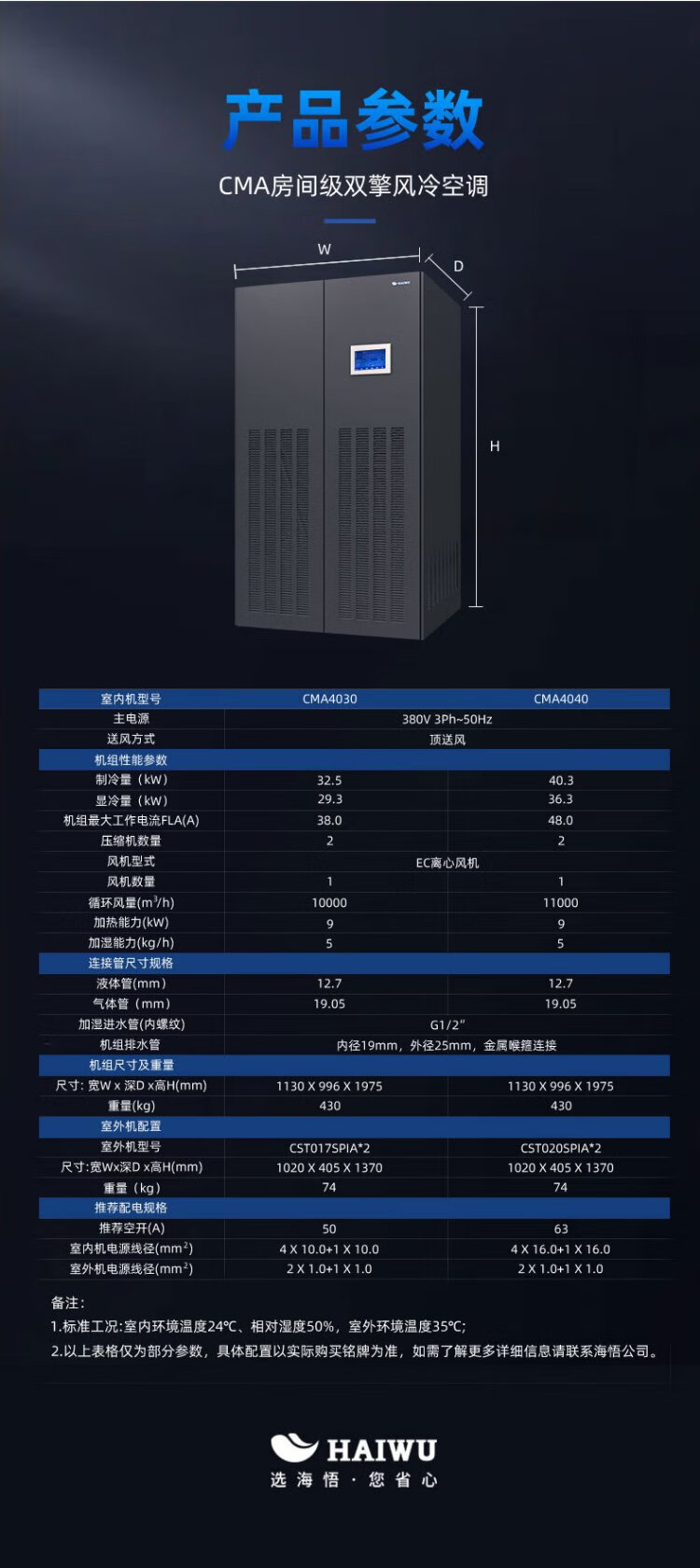 Haiwu CMA room-level dual-engine air-cooled precision air conditioner computer room air conditioner 30kW indoor unit dual system + outdoor unit