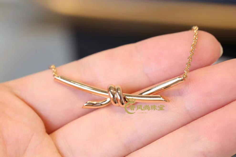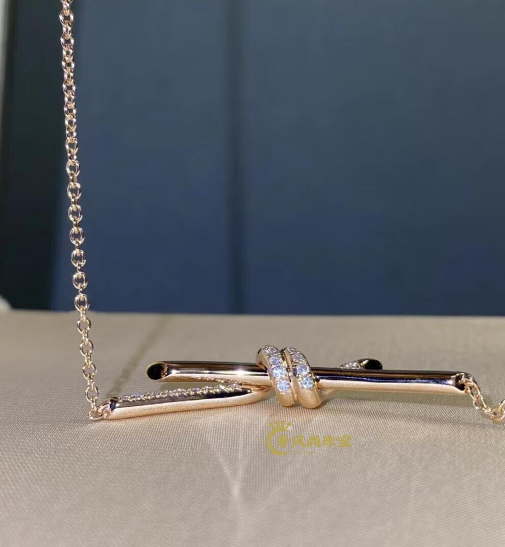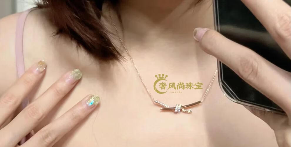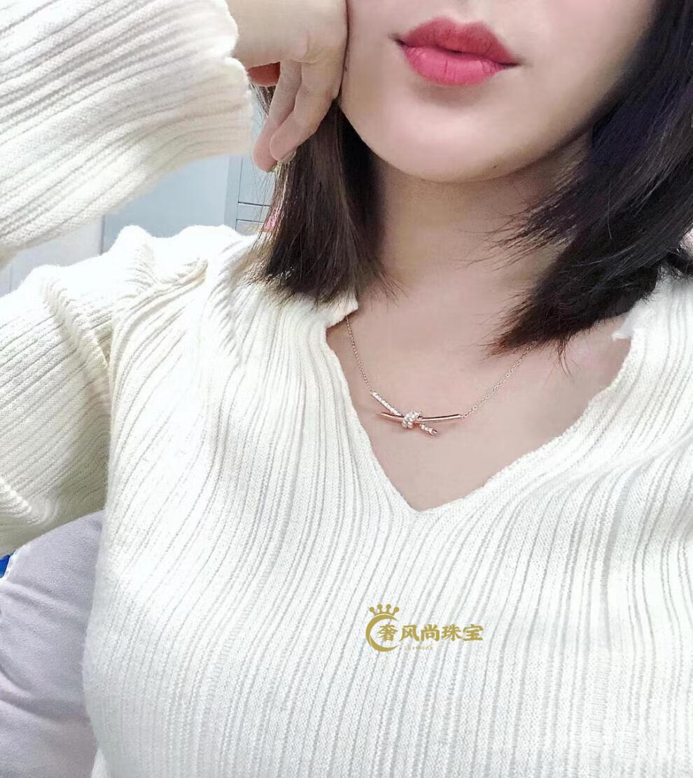 Fat Donglai's same style 18k gold smile necklace Knot rope for women, light luxury and simple K gold rose gold bow silver T-band diamond necklace rose gold