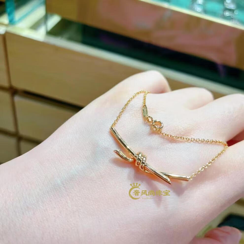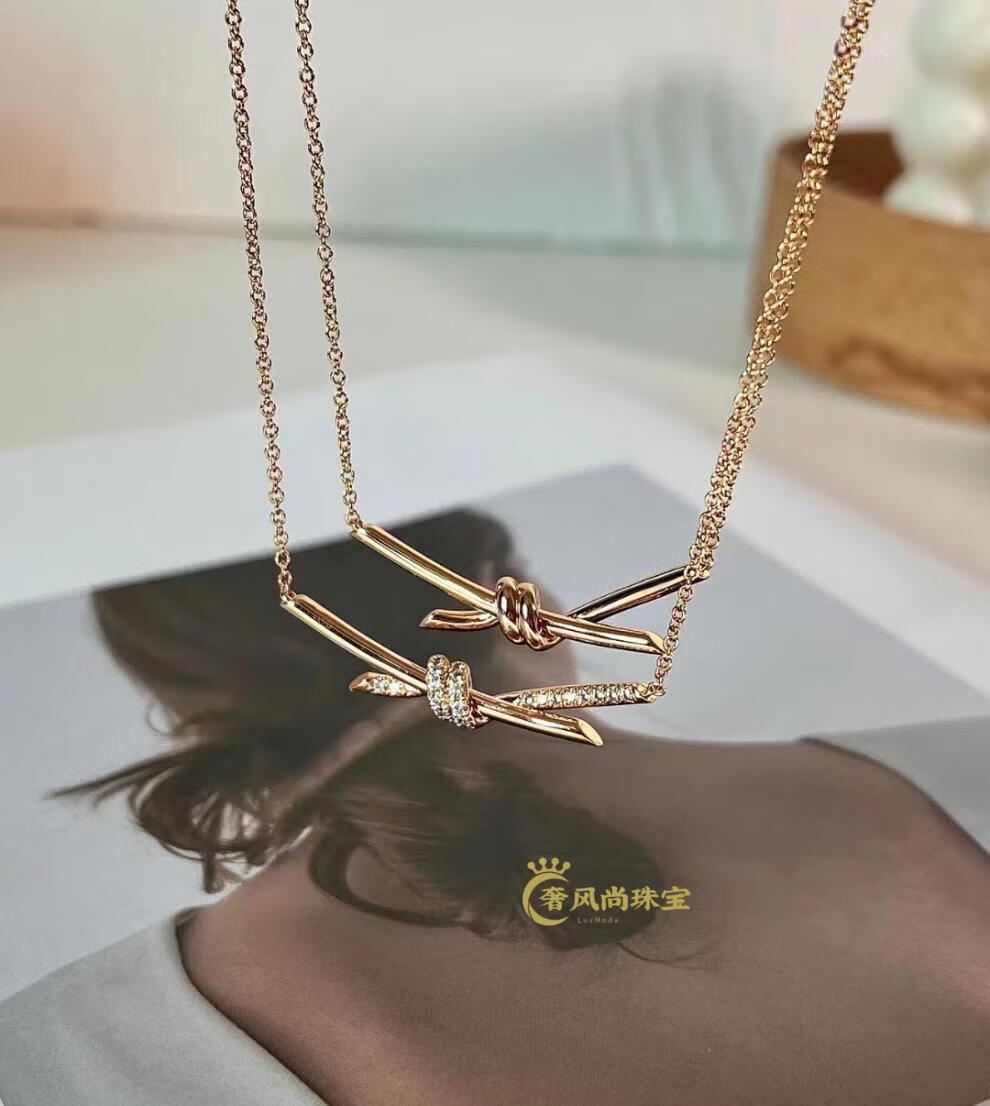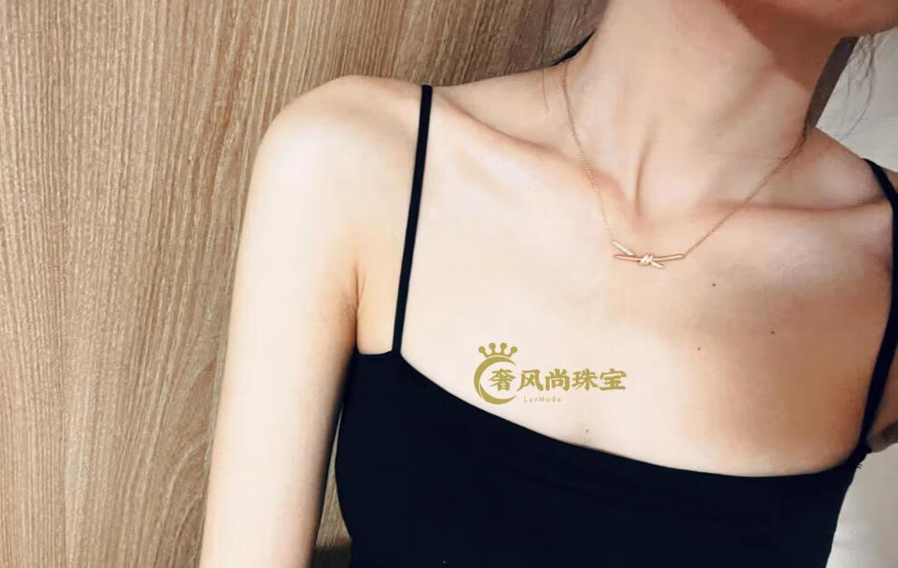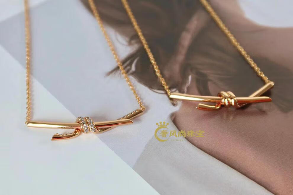 Fat Donglai's same style 18k gold smile necklace Knot rope for women, light luxury and simple K gold rose gold bow silver T-band diamond necklace rose gold