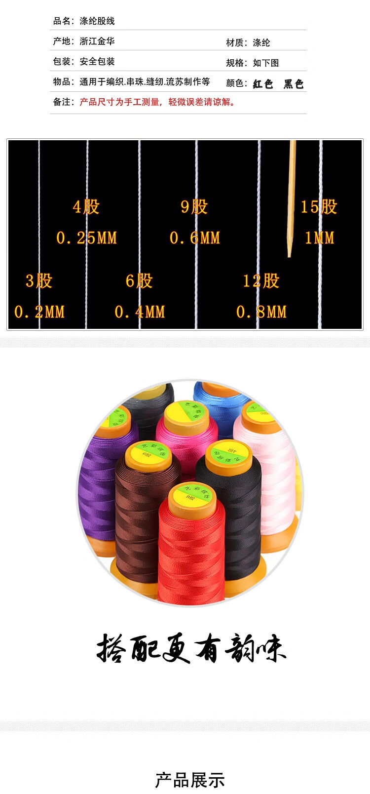 Muyu 9-strand Chinese knotted wire bullet shell rope ice silk thread tassel thread tassel thread DIY hand-woven wire accessories red 9-strand polyester thread in one roll