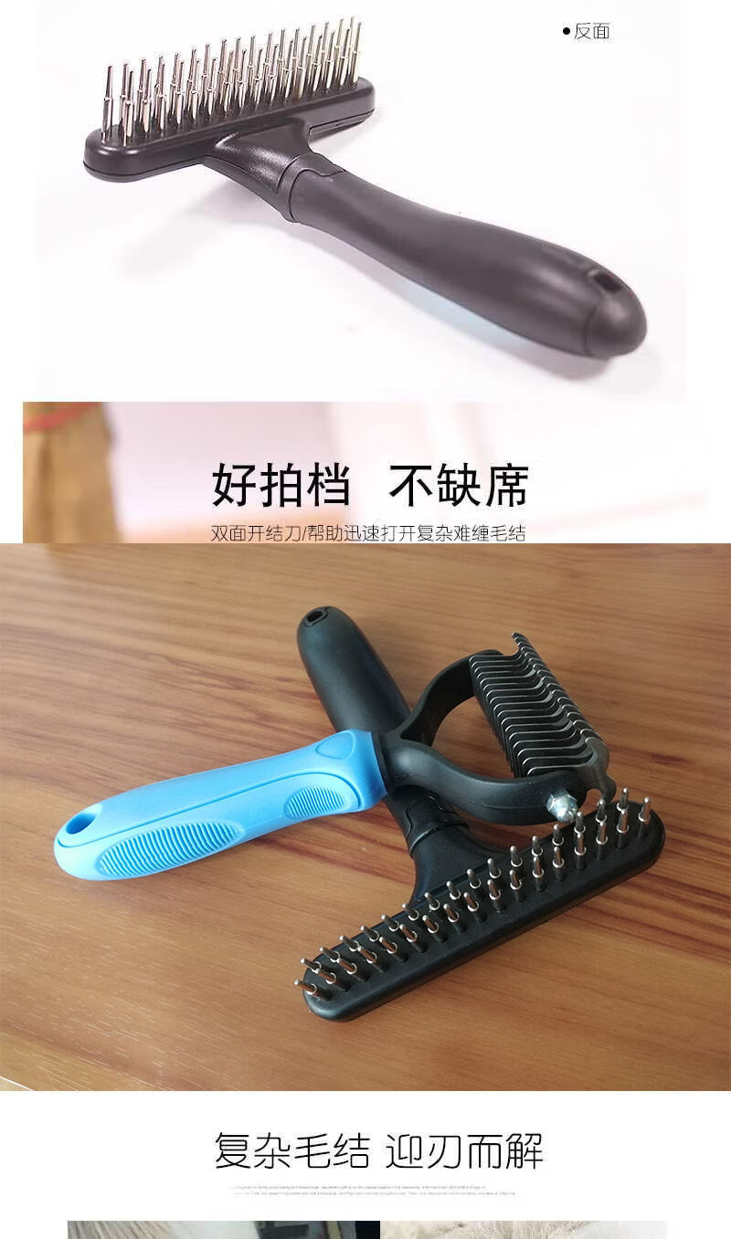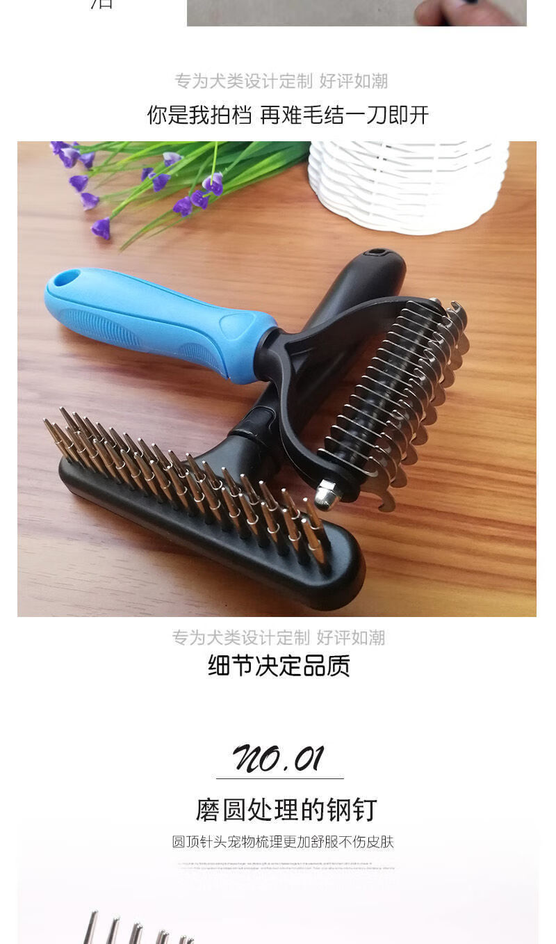 Jiajiemei Dog Hair Brush Depilation Comb Long-haired Alaskan Border Collie Golden Retriever Special Large Dog Nail Rake Comb Sky Blue + Knot Knife