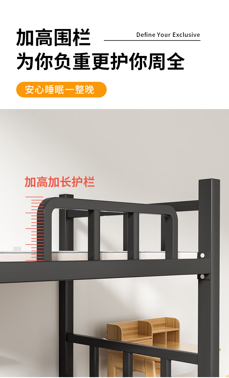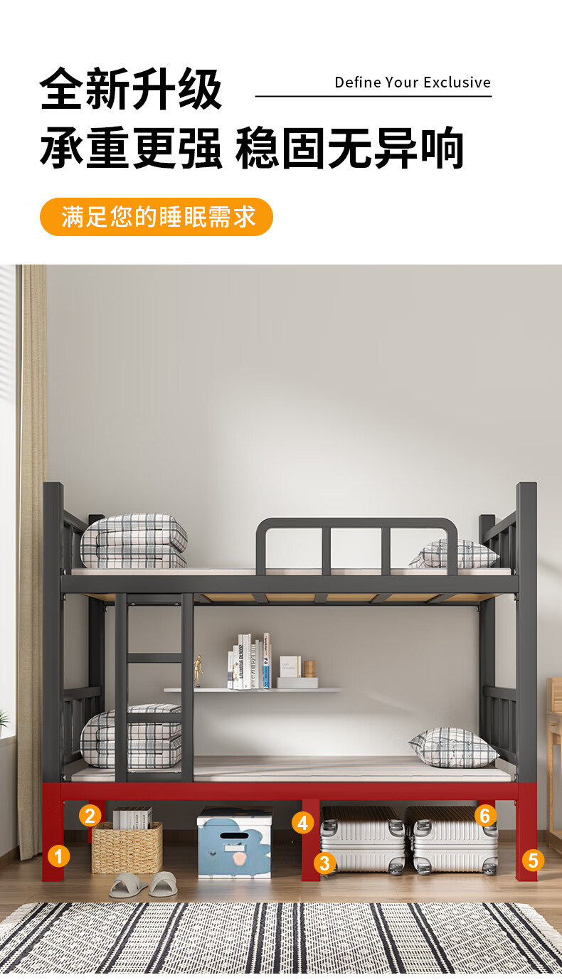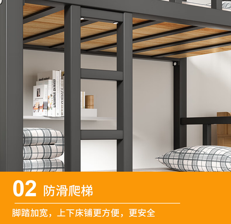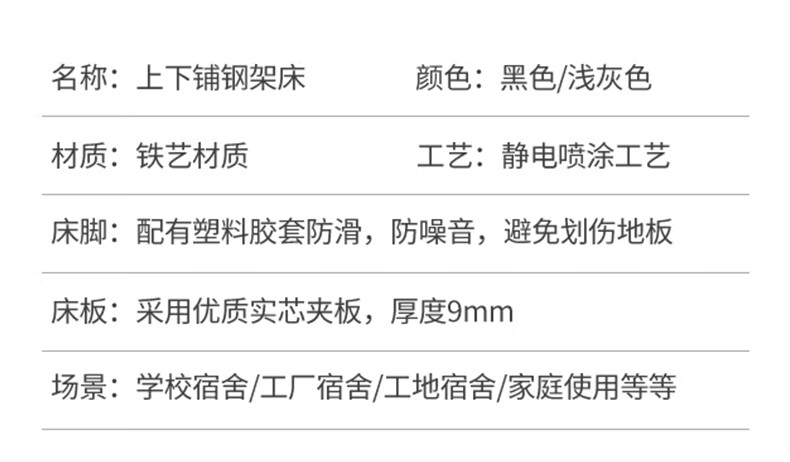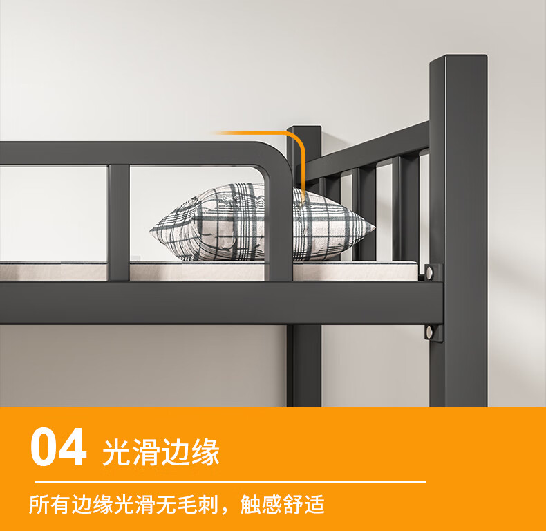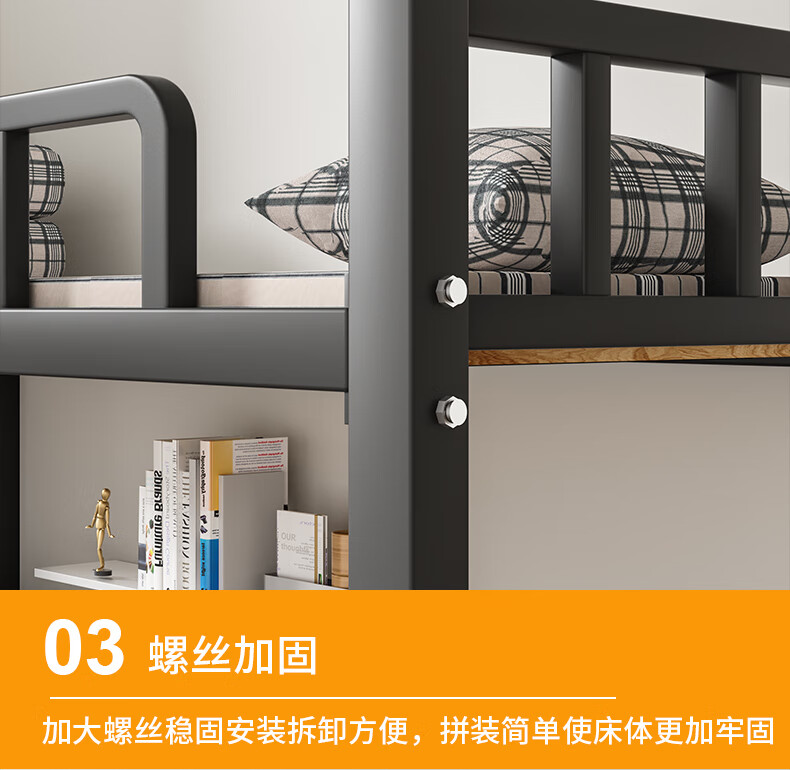 Thickened bunk bed, six-legged iron bed, thickened bunk bed, dormitory bed, construction site double bed, thickened iron bed, steel wood bed, black, promotional model 90 wide, 200 long, free silent bed board