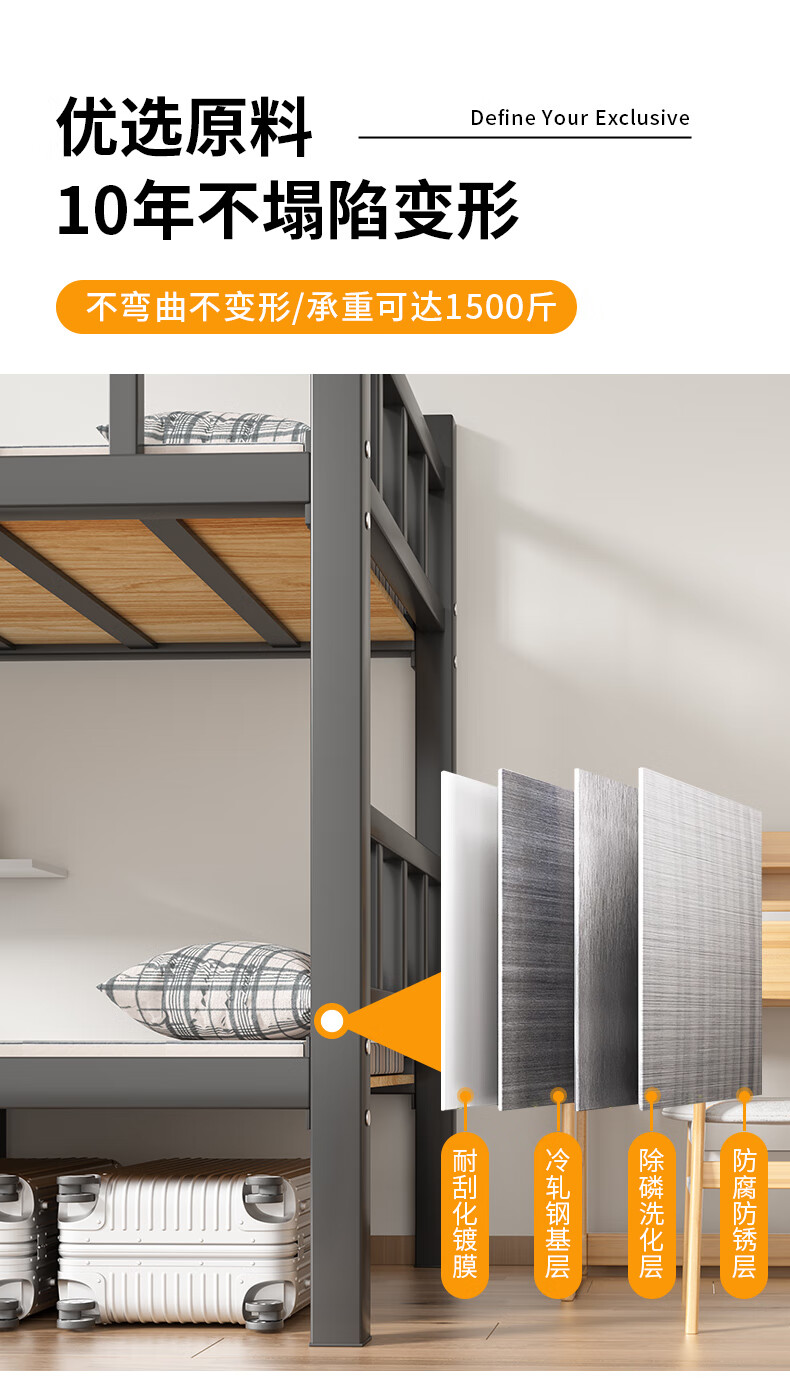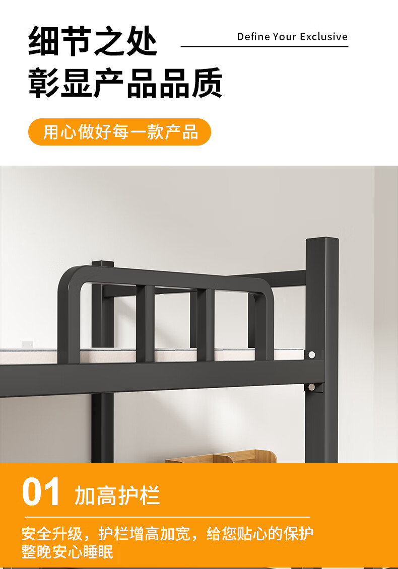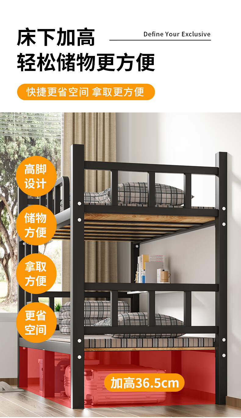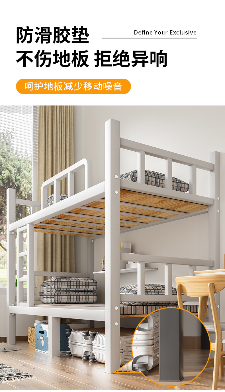 Thickened bunk bed, six-legged iron bed, thickened bunk bed, dormitory bed, construction site double bed, thickened iron bed, steel wood bed, black, promotional model 90 wide, 200 long, free silent bed board