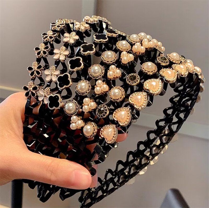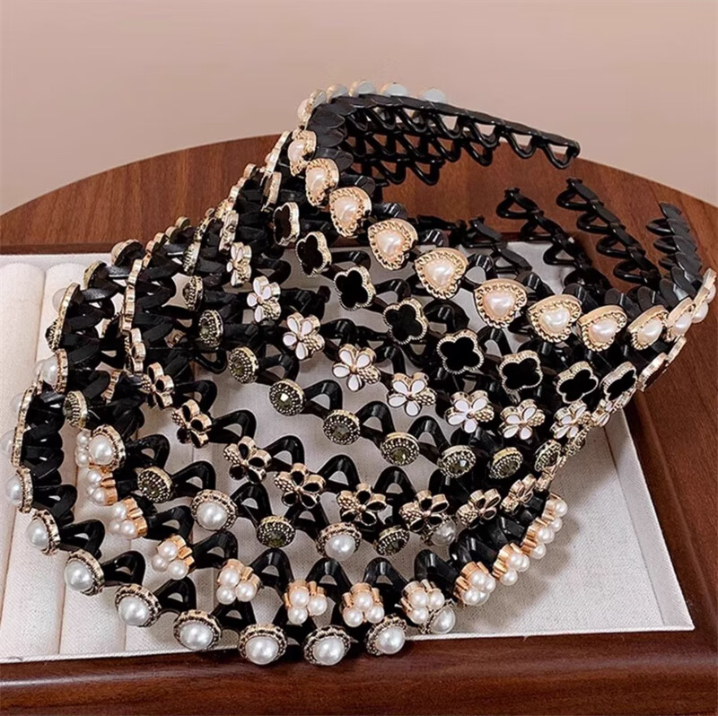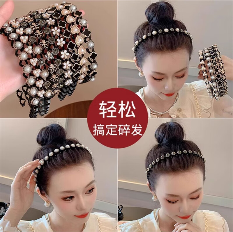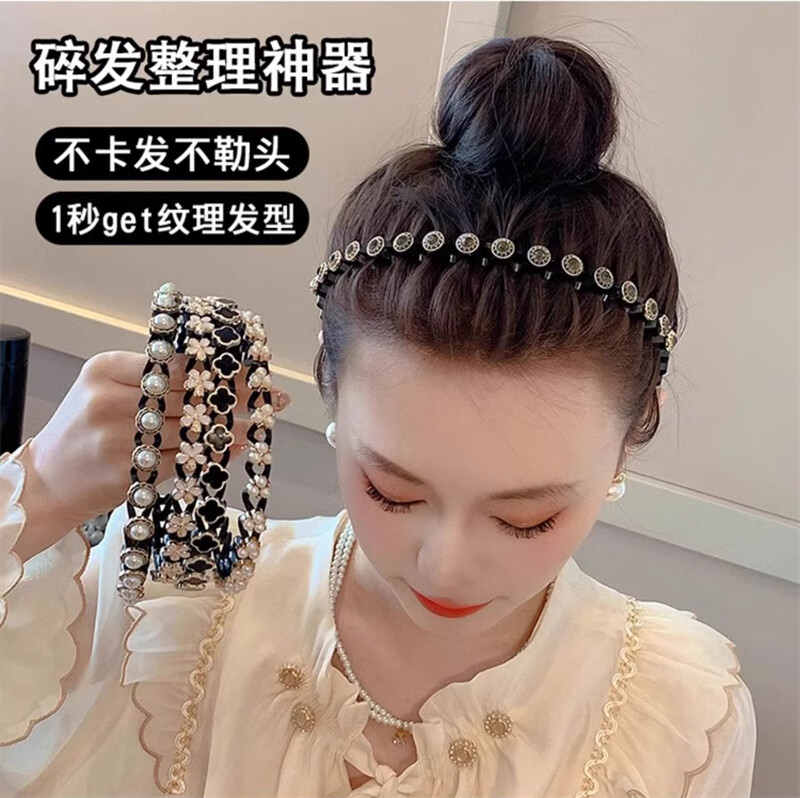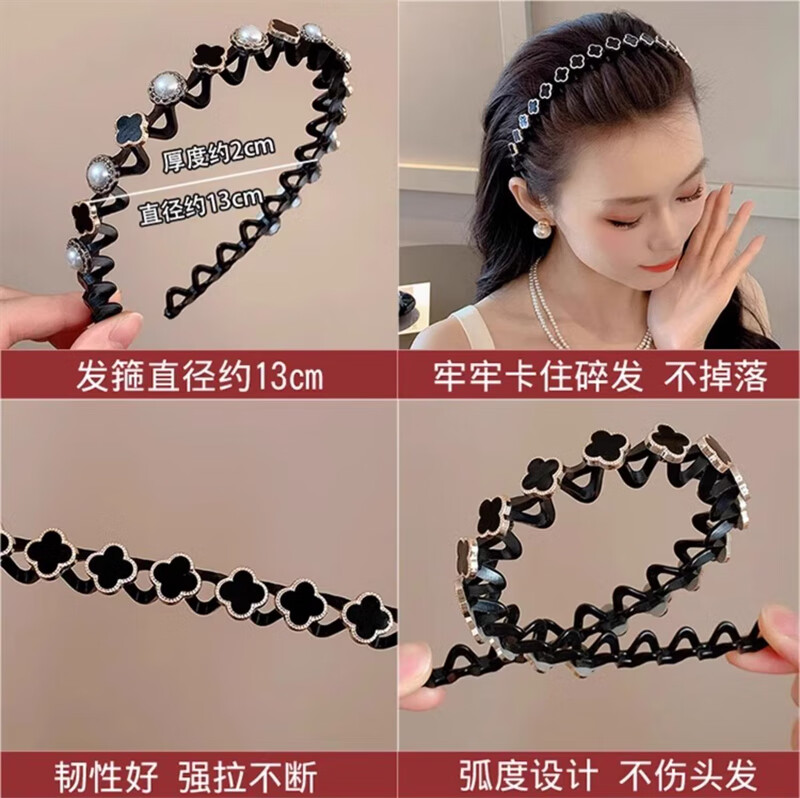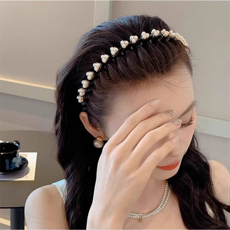 Daiyan pearl headband for women with bangs, broken hair, high-end headband, face wash, non-slip hair clips, hair accessories, hair bundles, pearl headband, broken hair artifact, random 2-piece set