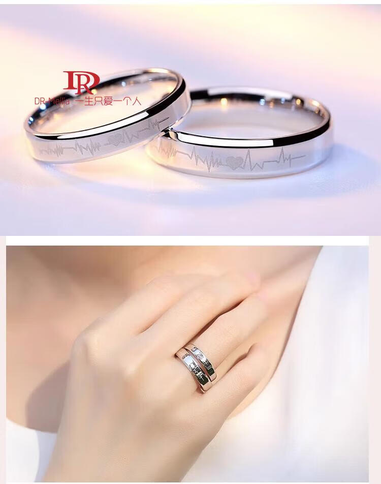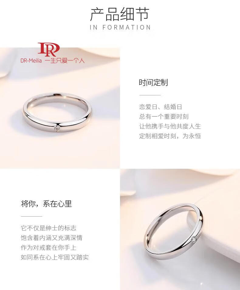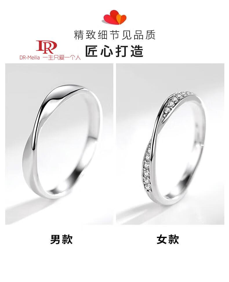 DR-FLVVS Fat Donglai's same style PT950 platinum matching ring for women and men, solid glossy white gold, couple's wedding, Valentine's Day, companion ring, platinum + quality inspection certificate, couple's pair of rings