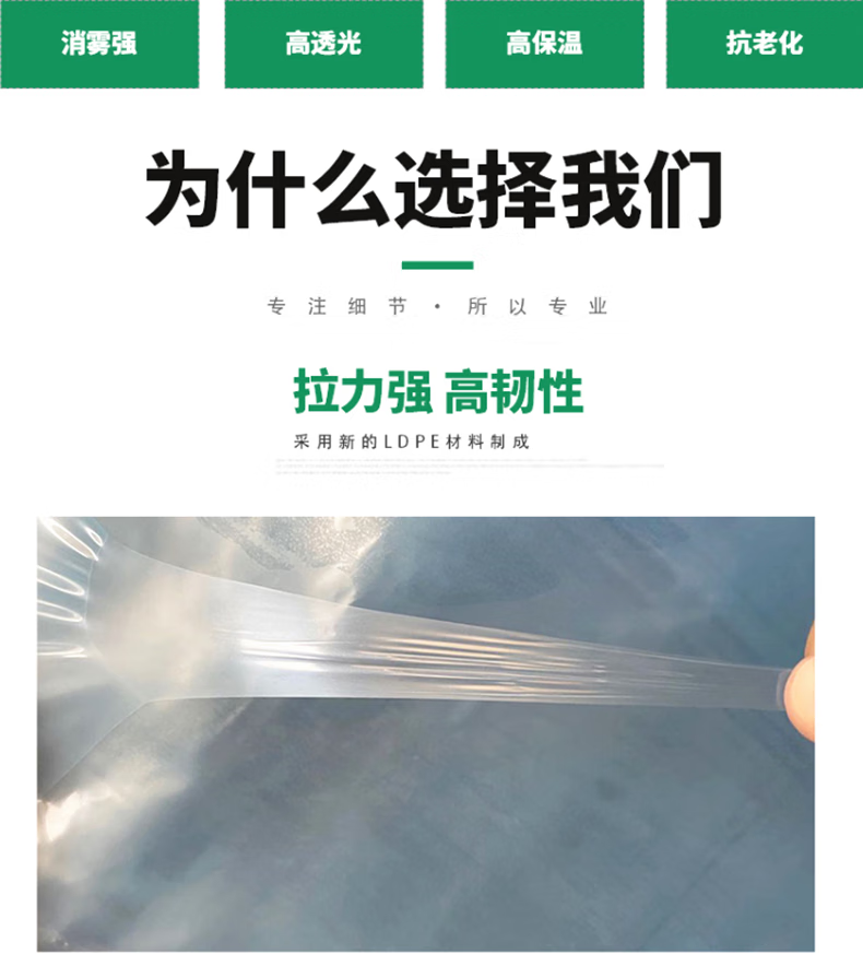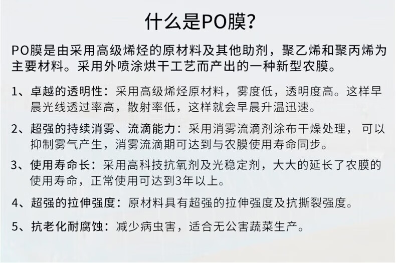Nongdage thickened PO film greenhouse film vegetable insulation thickened drip-free film transparent plastic film high light transmittance can be customized size 13 wire high light transmittance PO film double anti-aging + anti-aging 13 meters wide and 50 meters long whole sheet