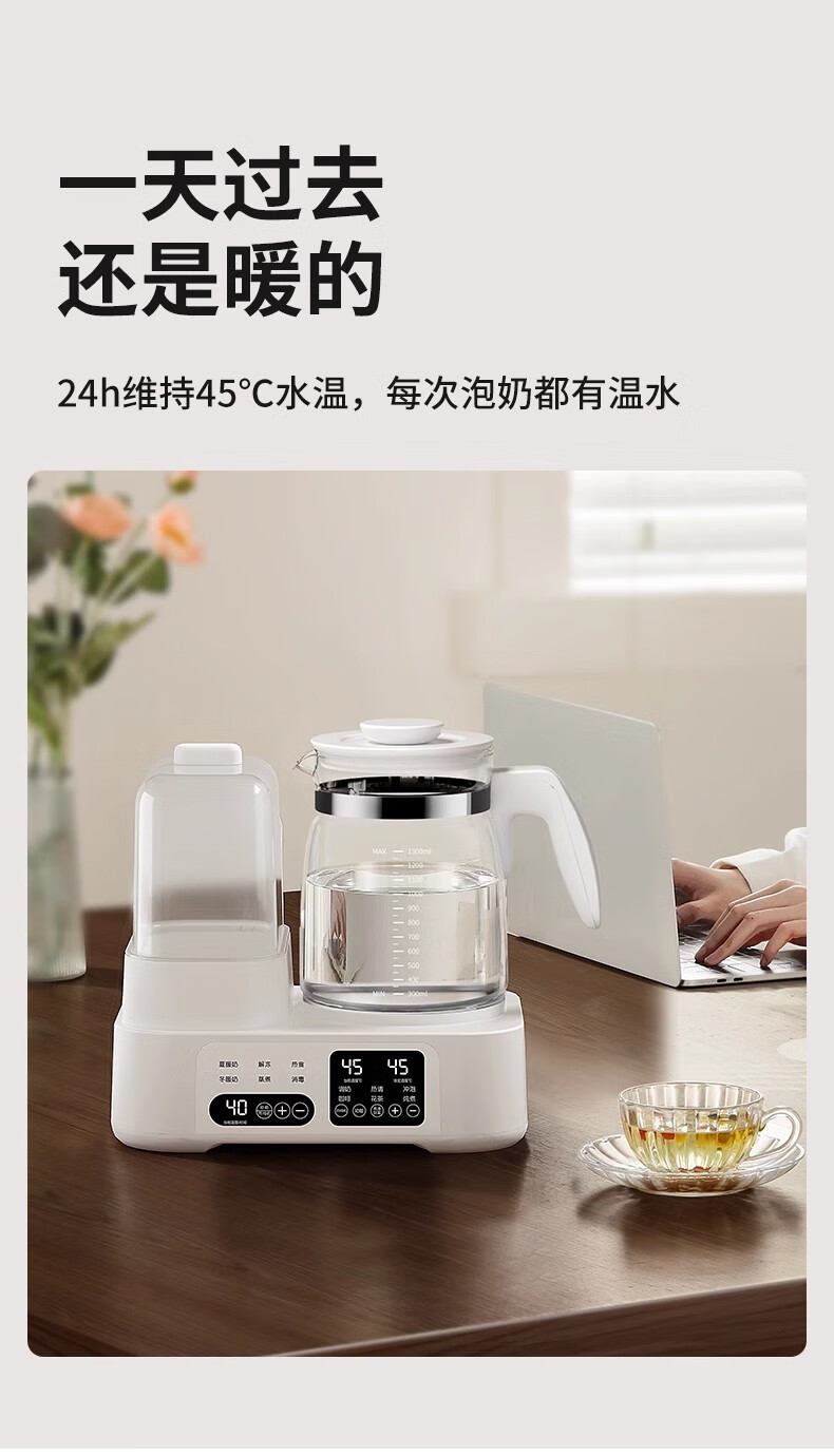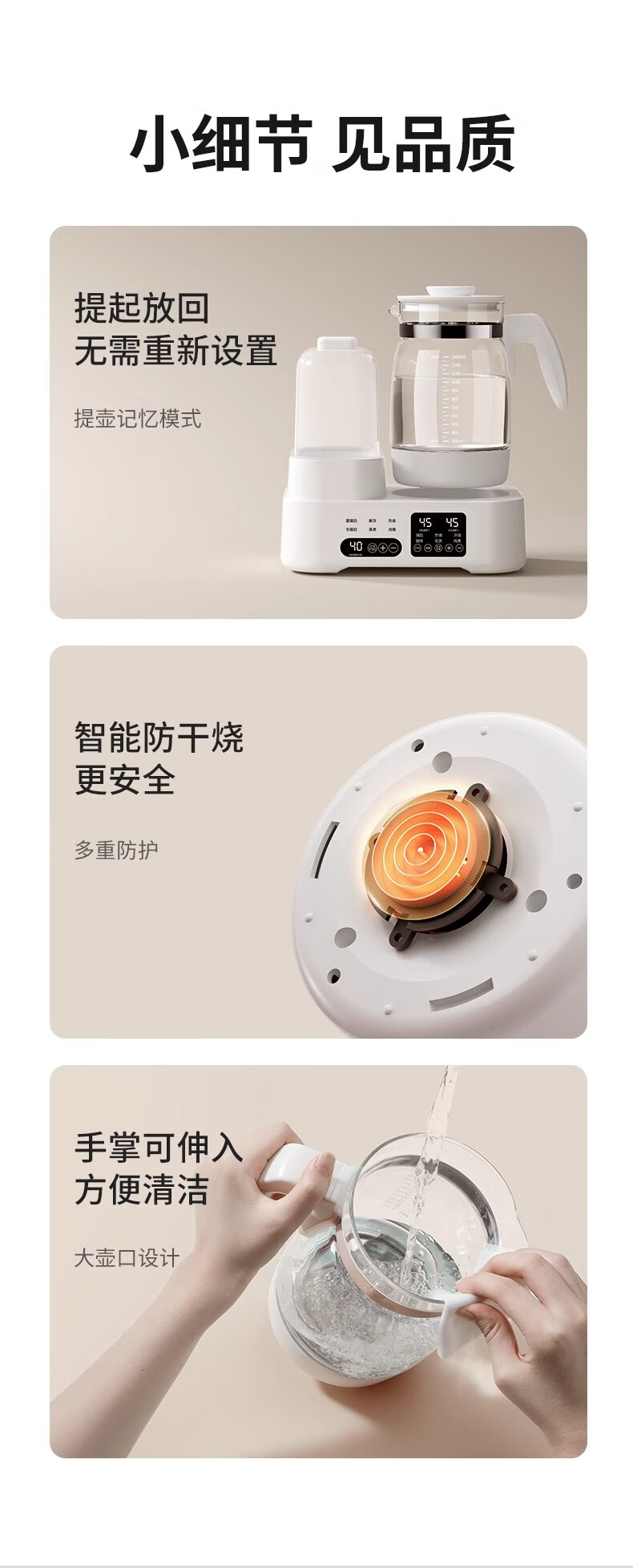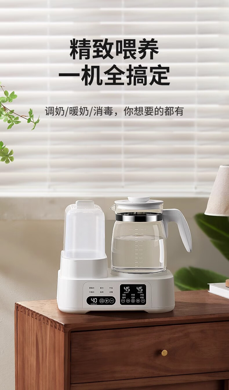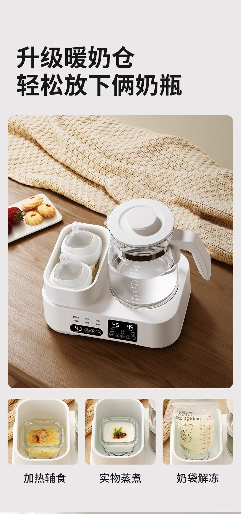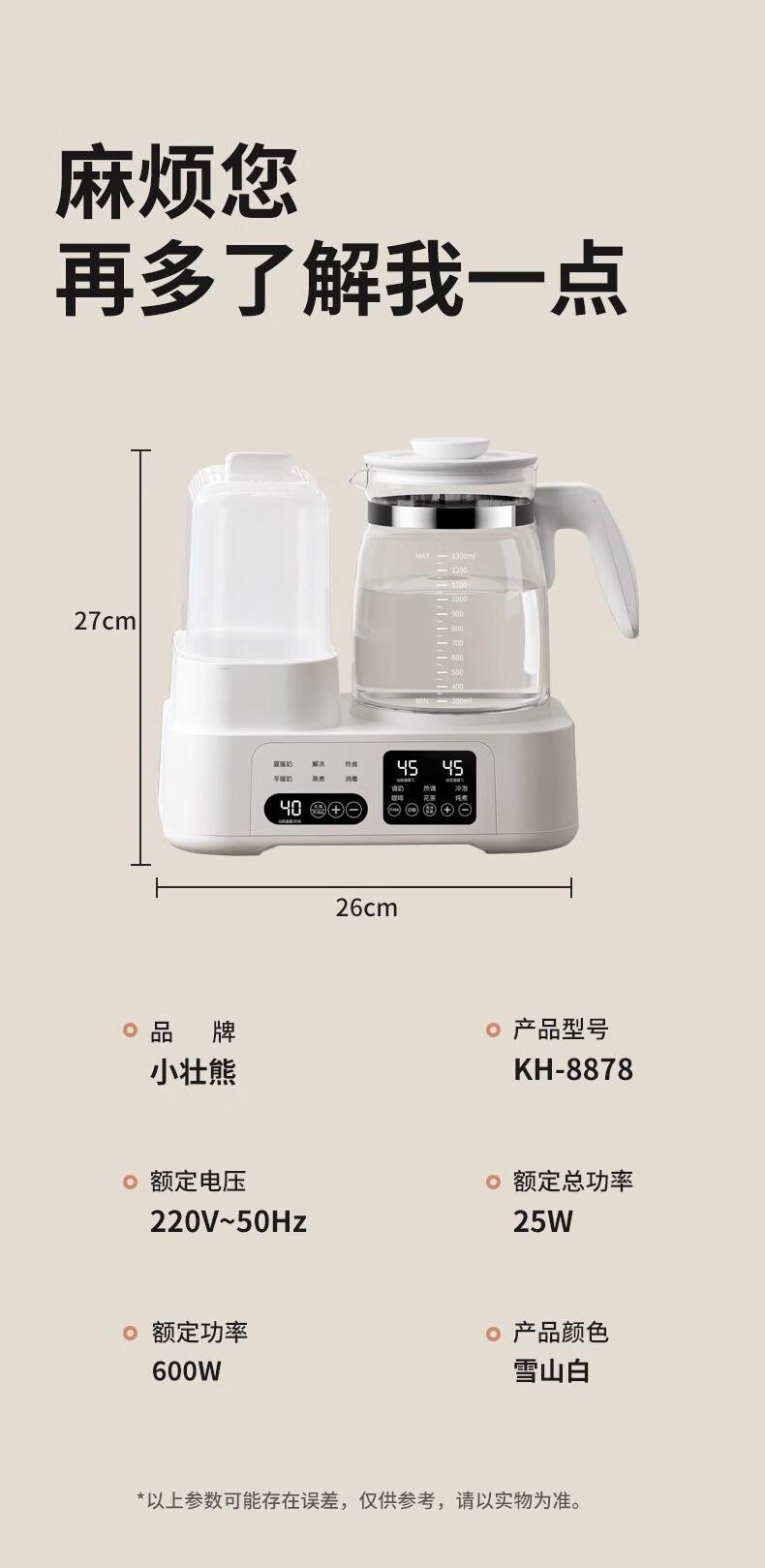 小壮熊奶瓶消毒柜婴儿恒温水壶恒温壶婴儿冲奶一体机暖奶器温奶器二合一 【升级款】雪山白 1300ml