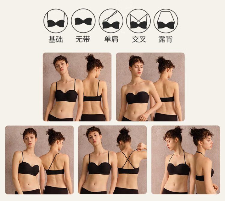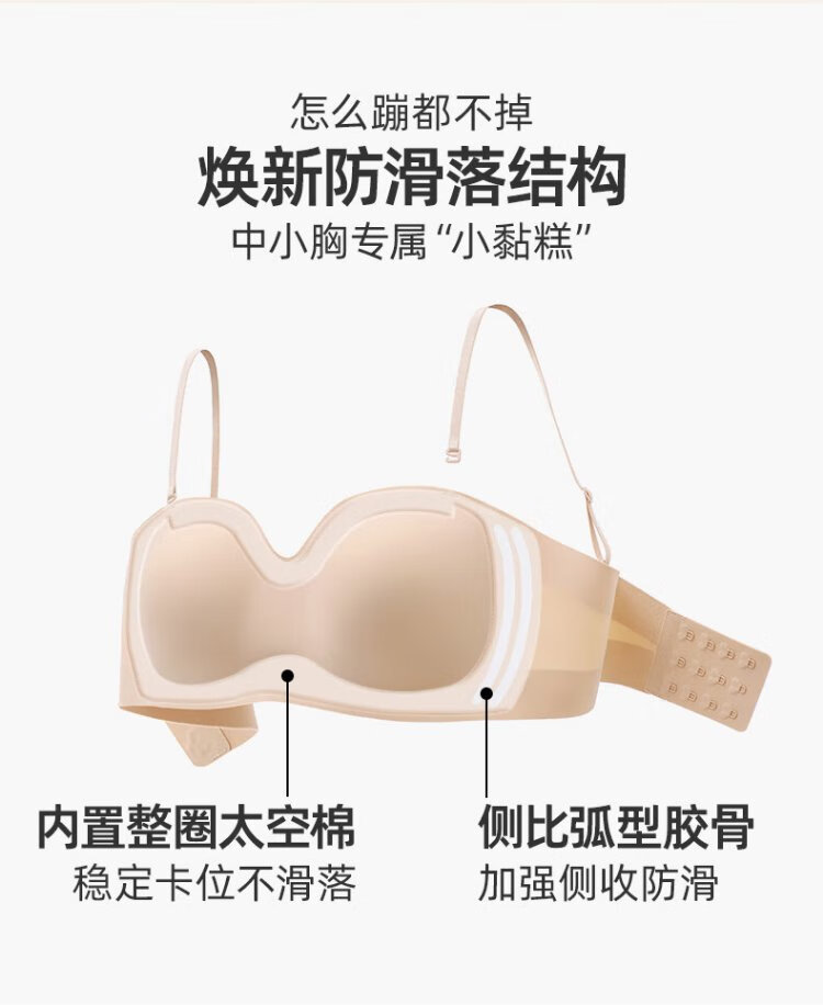 Ya (HSIA) Xiao Nian Gao Ya strapless bra for women summer non-slip tube top seamless no wire bra bra wraps the breasts and beautiful back thin black with detachable shoulder straps S