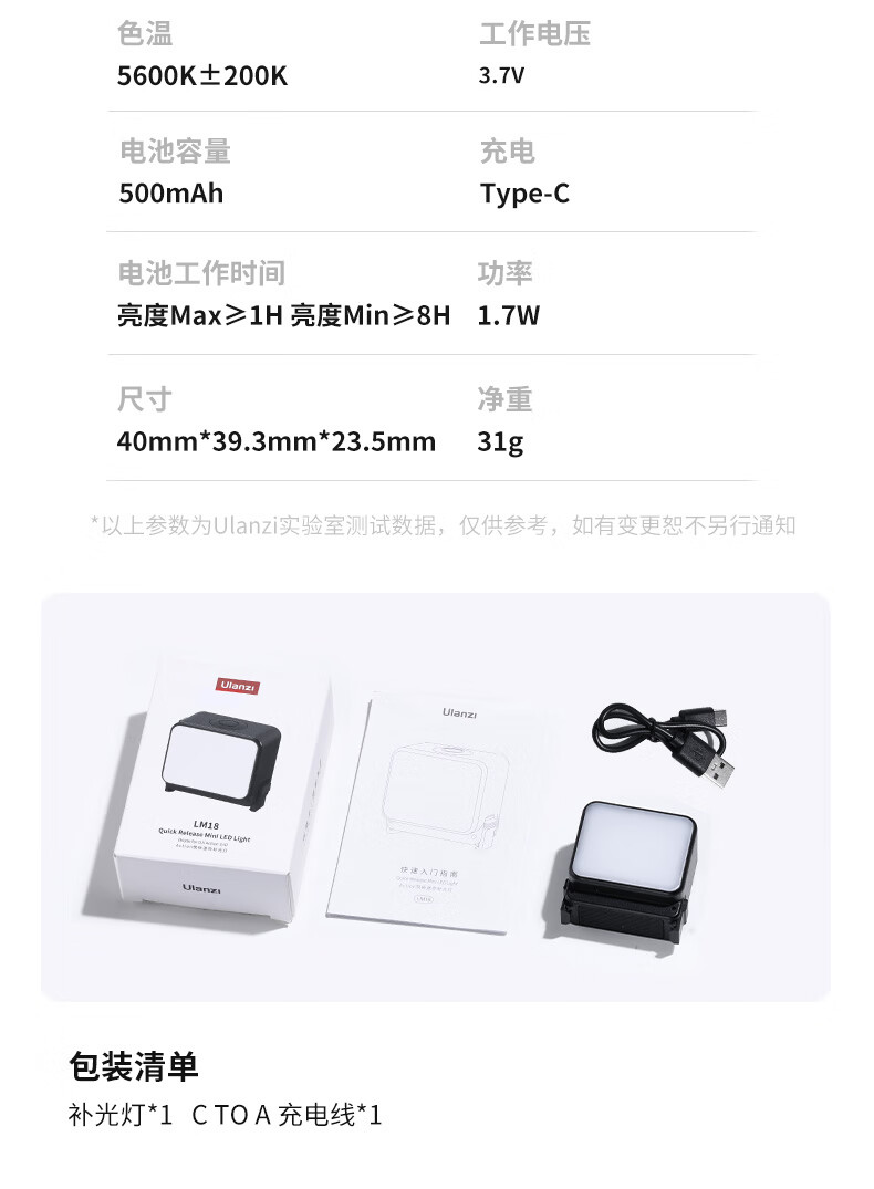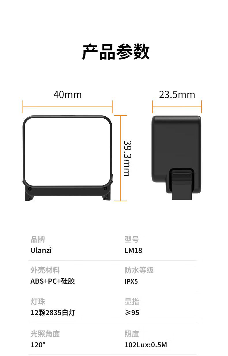 Ulanzi LM18 DJI Action5pro/4/3 high-bright waterproof fill light small portable live broadcast vlog pocket always-on light camera photography light Action waterproof fill light quick release and installation