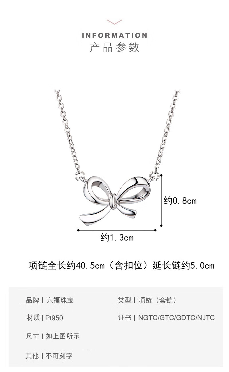 Lukfook Jewelry platinum 950 bow platinum necklace set price G07TBPN0024 2.24 grams (including labor cost 249 yuan)