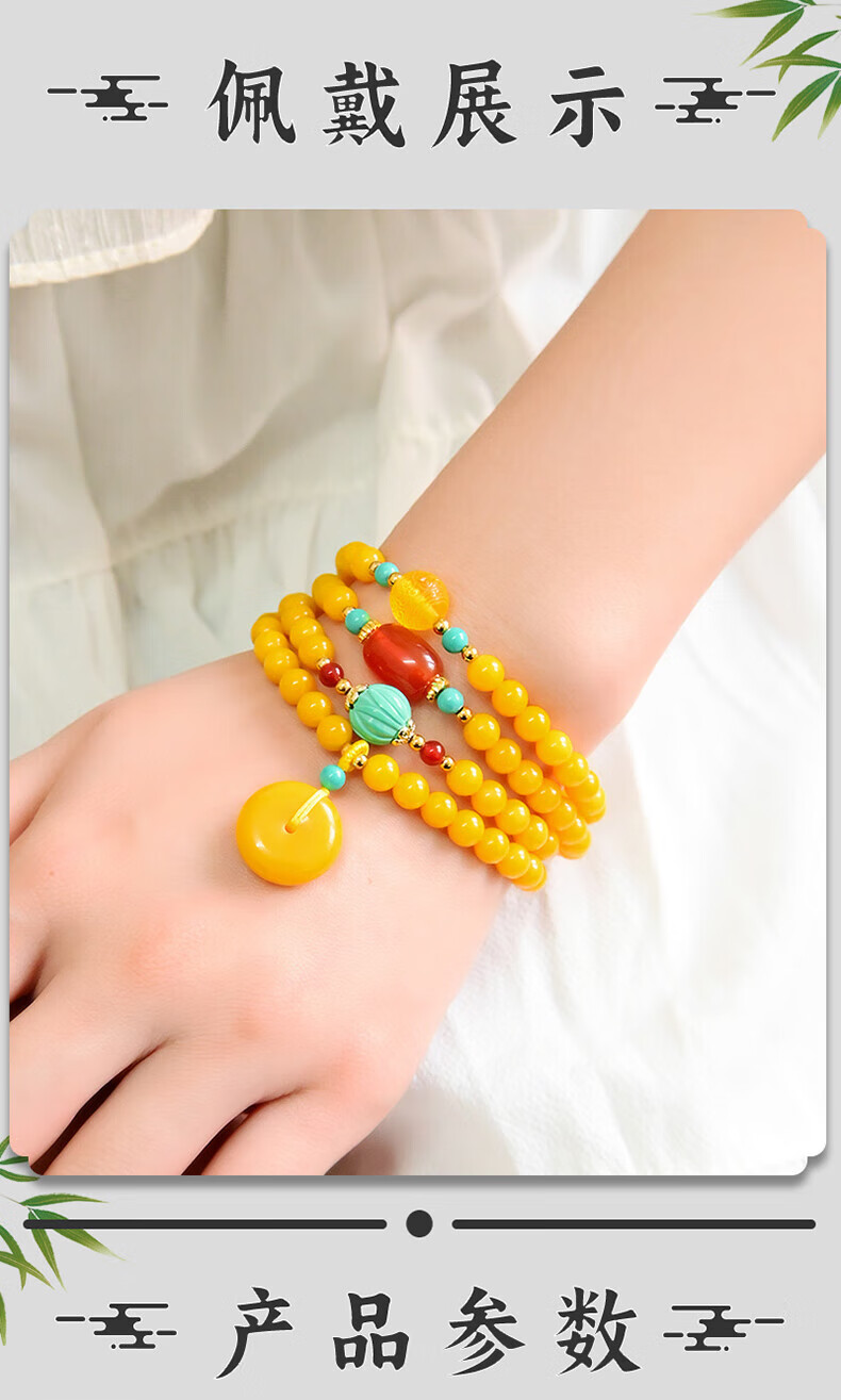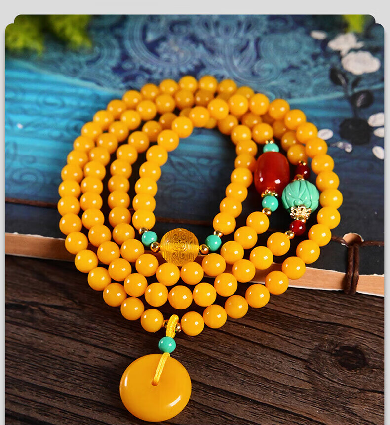 La Yun Feiyin Beeswax Bracelet for Women 108 Rosary Beads Multi-circle Bracelet Chicken Oil Yellow Safety Buckle Temperament Fashion Hand Accessories 6mm Flawless Chicken Oil Yellow (with Certificate)
