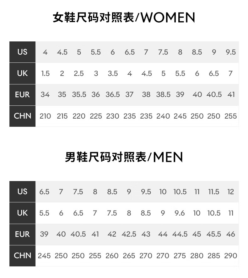 China (cm) 36 - 37 38 - 39 40 - 42 43 - 44 45 - 47