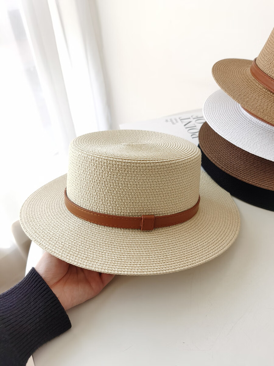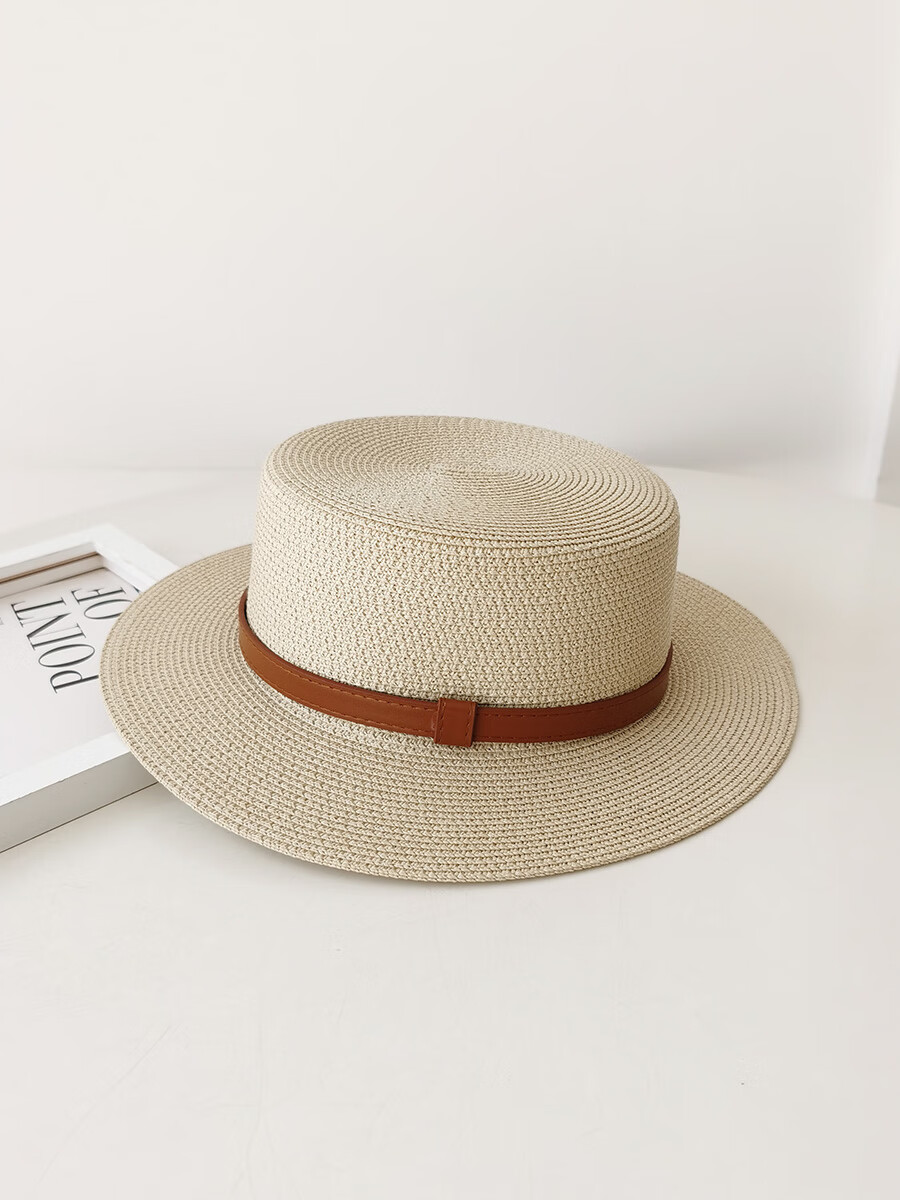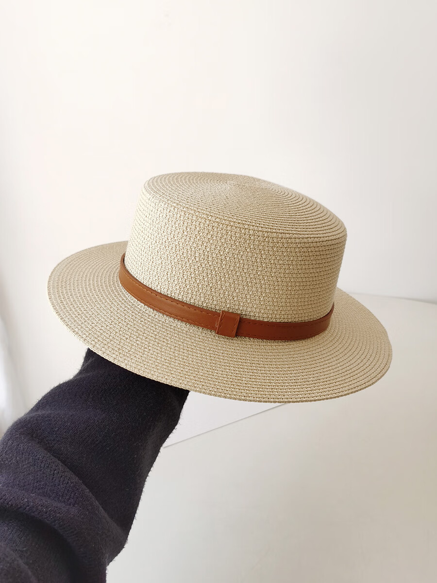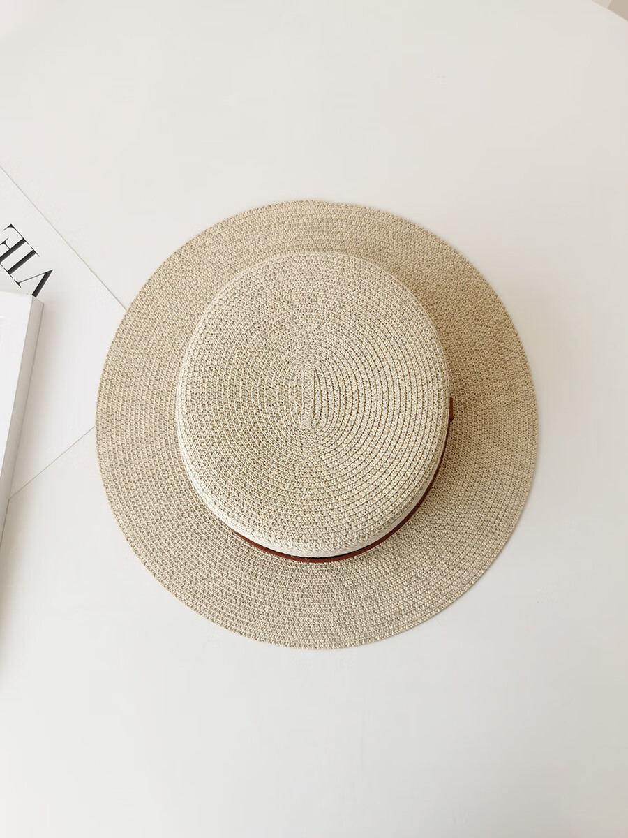 Clolv kiss2026 Französischer Flat-Top-Strohhut für Damen im Retro-Stil im britischen Stil, der das Gesicht zeigt, kleiner Sommer-Sonnenschutz, Sonnenschutz, Strand-Urlaubsstil, Hut, beige, verstellbar
