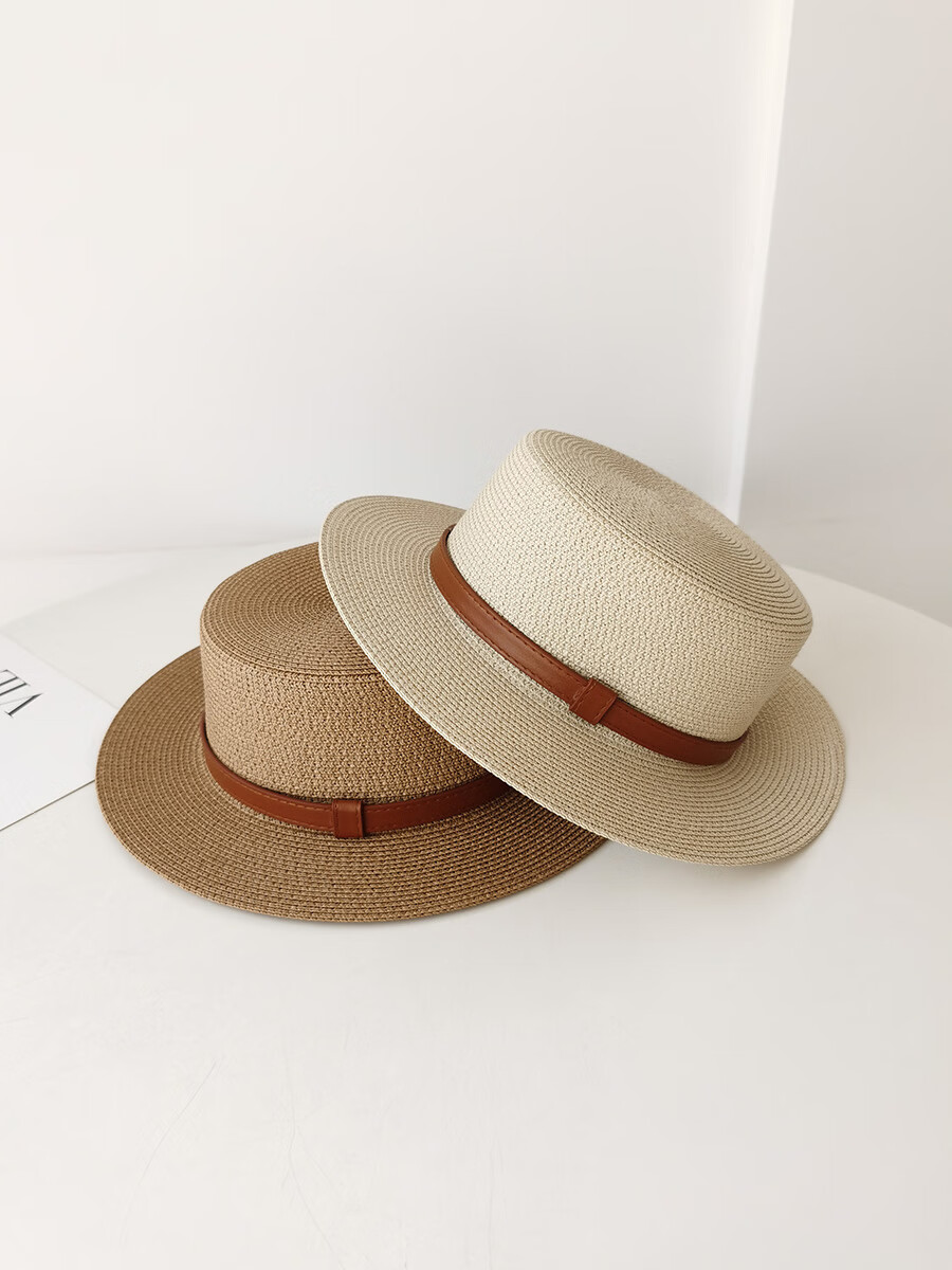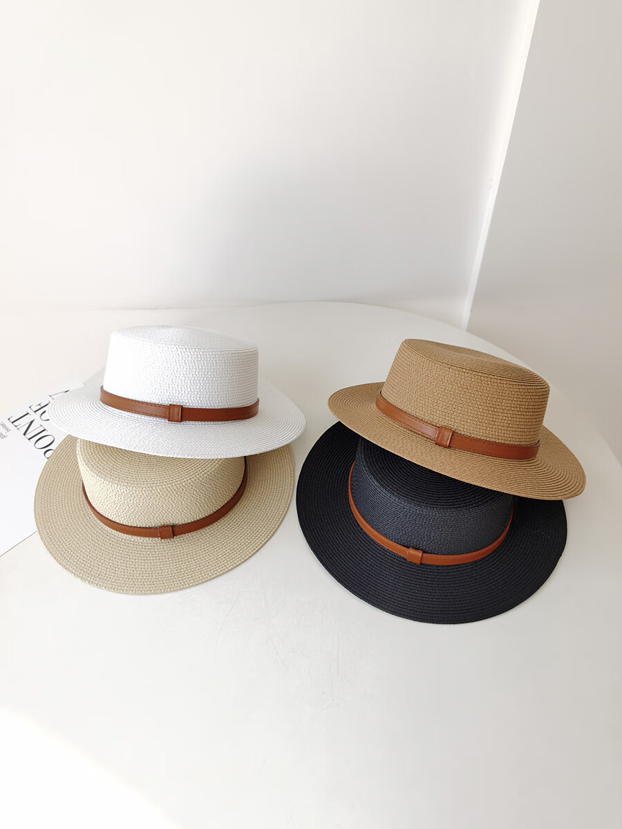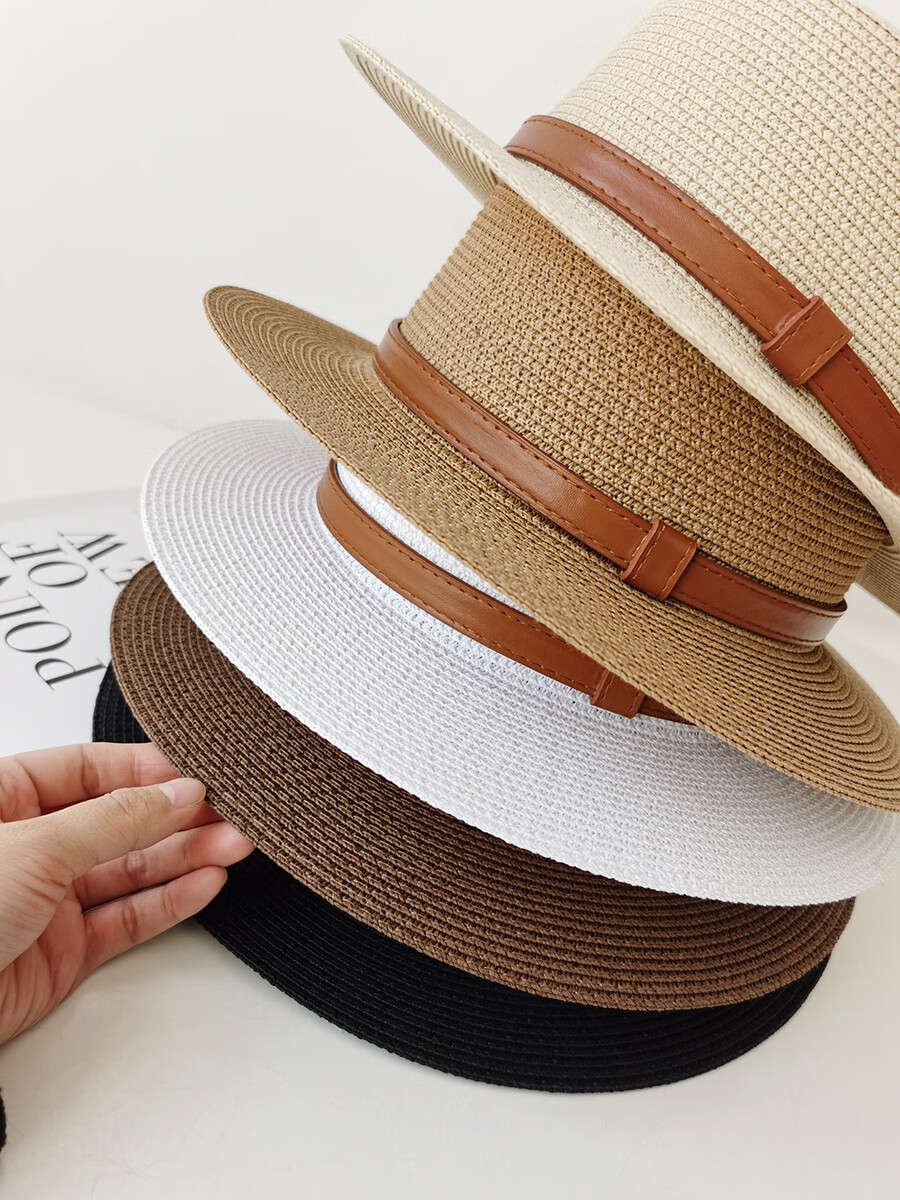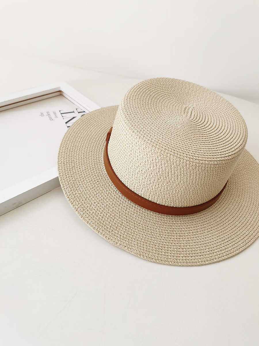 Clolv kiss2026 Französischer Flat-Top-Strohhut für Damen im Retro-Stil im britischen Stil, der das Gesicht zeigt, kleiner Sommer-Sonnenschutz, Sonnenschutz, Strand-Urlaubsstil, Hut, beige, verstellbar