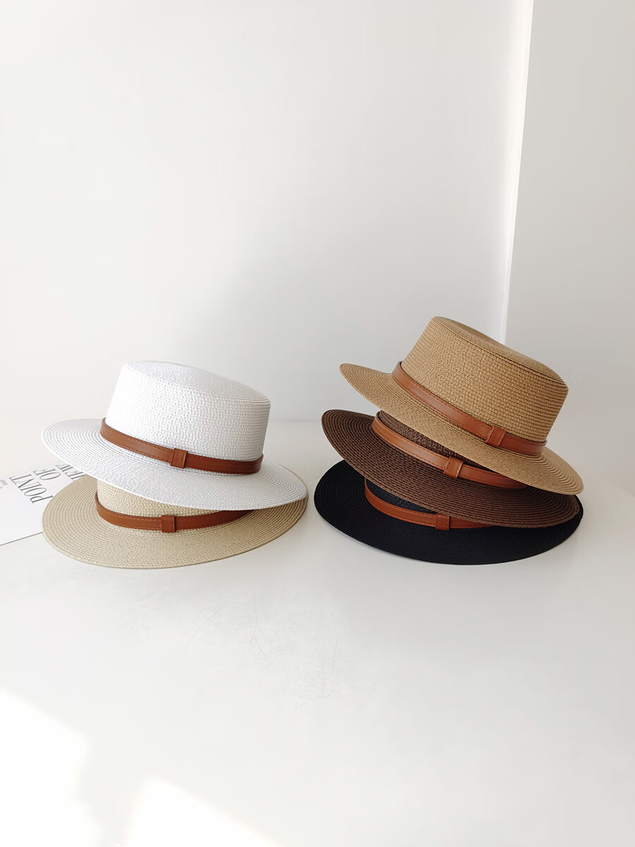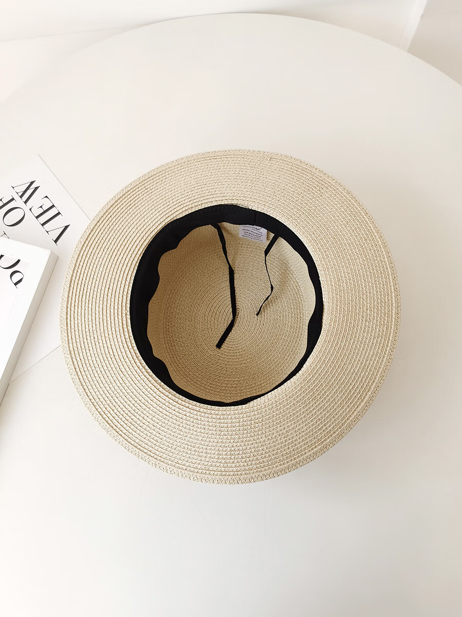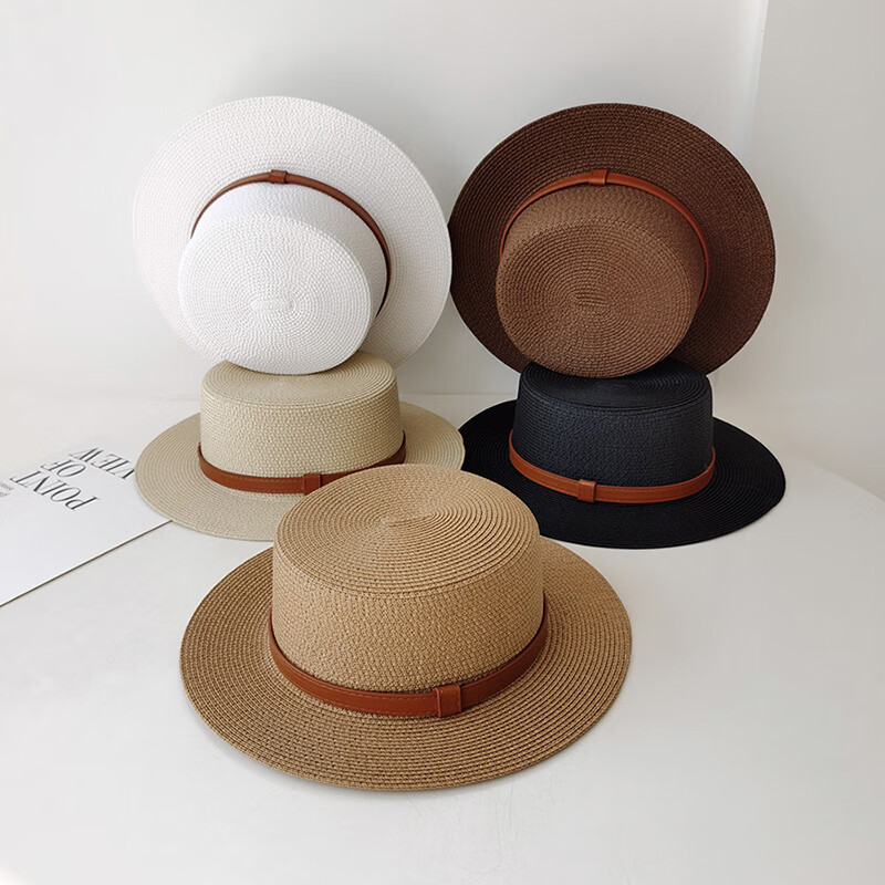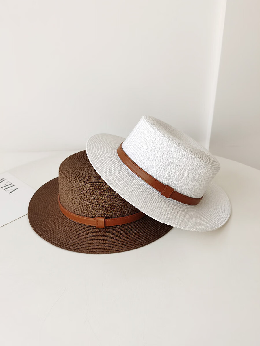 Clolv kiss2026 Französischer Flat-Top-Strohhut für Damen im Retro-Stil im britischen Stil, der das Gesicht zeigt, kleiner Sommer-Sonnenschutz, Sonnenschutz, Strand-Urlaubsstil, Hut, beige, verstellbar