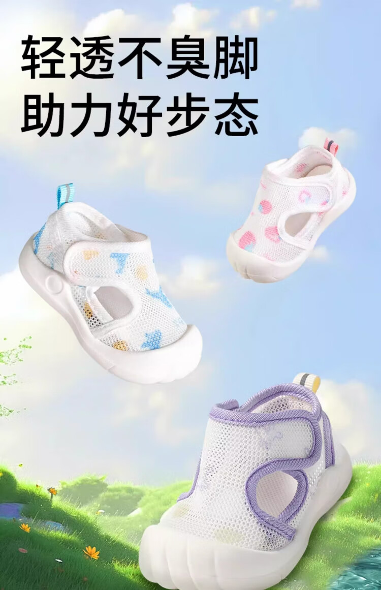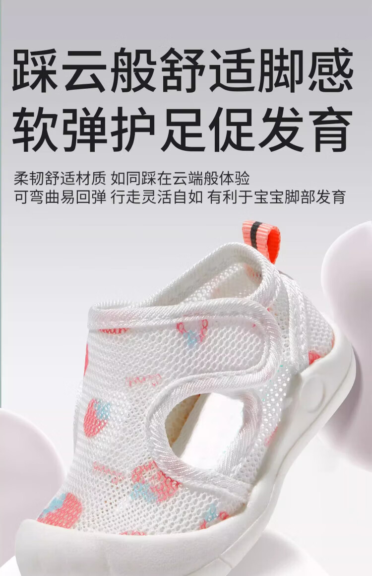Kechao Baby Summer Sandals Men's Toddler Shoes 0 to 1-2 Years Old Baby Children's Shoes Soft Bottom Baby Mesh Girls' Shoes Lai Xi Pink Double-sided Velcro Easy to Put on and Take Off Sizes 13-17/Suitable for Feet Length 12.5cm