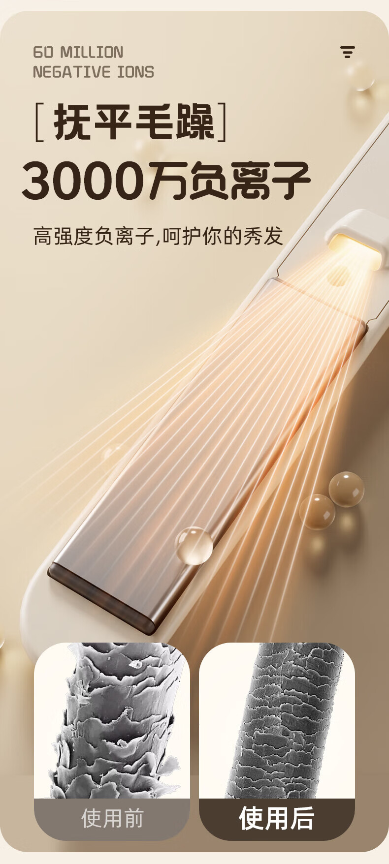 Chigo Negative Ion Splint Straight Clip for Straight Hair and Curly Hair Dual-Purpose Negative Ions Does Not Hurt Hair Ironing Board Anti-Perm Hair Clip Curling Iron Mother's Day Gift Ivory White 30 Million Negative Ions + Three-speed Temperature Control