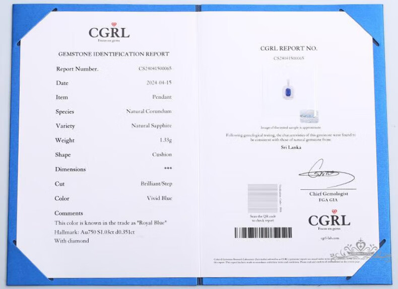 Haikai Necklace Women's Royal Blue Sapphire Necklace Luxury Jewelry Valentine's Day Birthday Gift Royal Sapphire Necklace (1.03 carats/selected flawless)