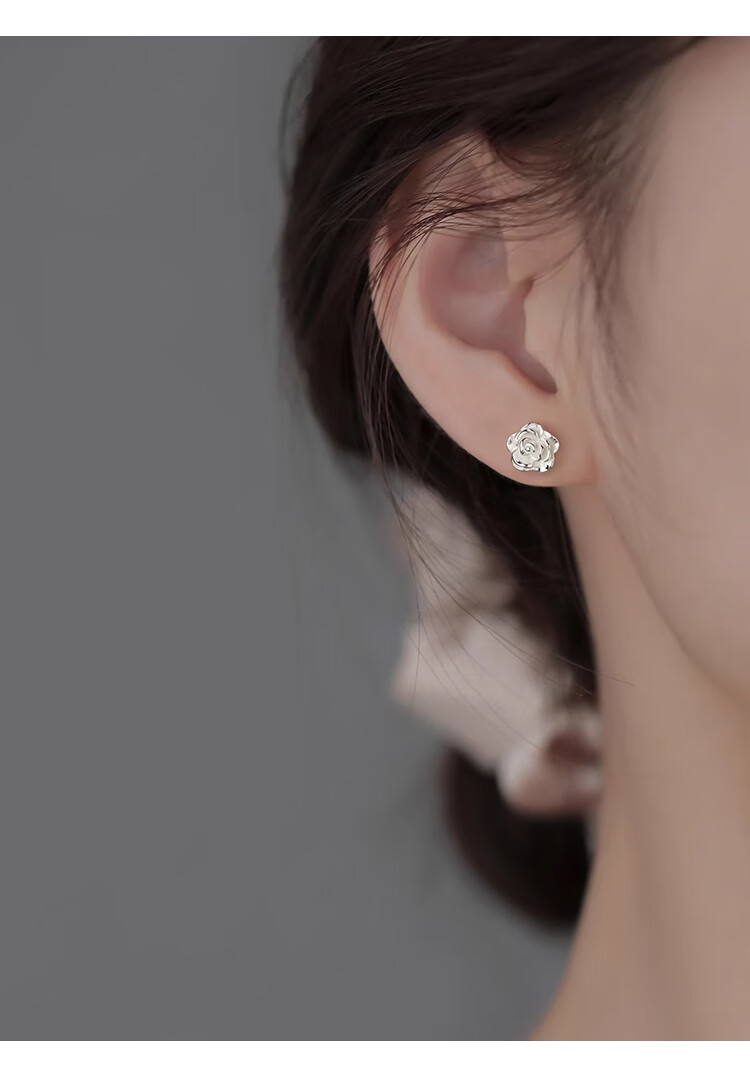 Lnieer999 Pure Silver Earrings Women's Camellia Ear Hole Earrings Flower Silver Earrings 2025 New High-end Silver Earrings Earring Camellia Earrings Pure Silver 999
