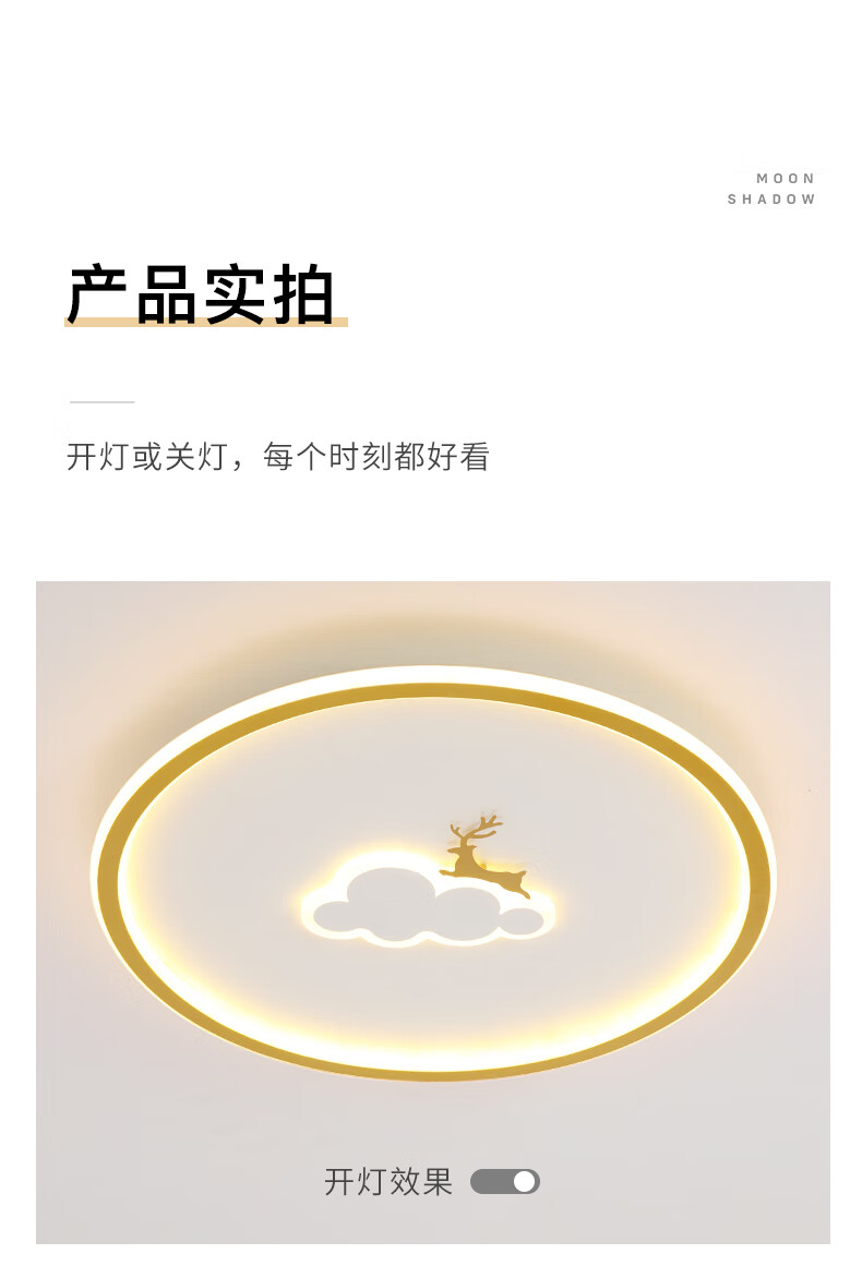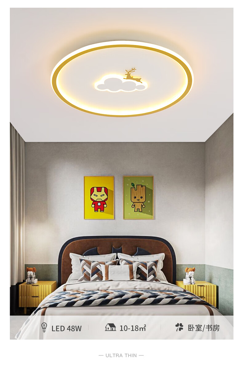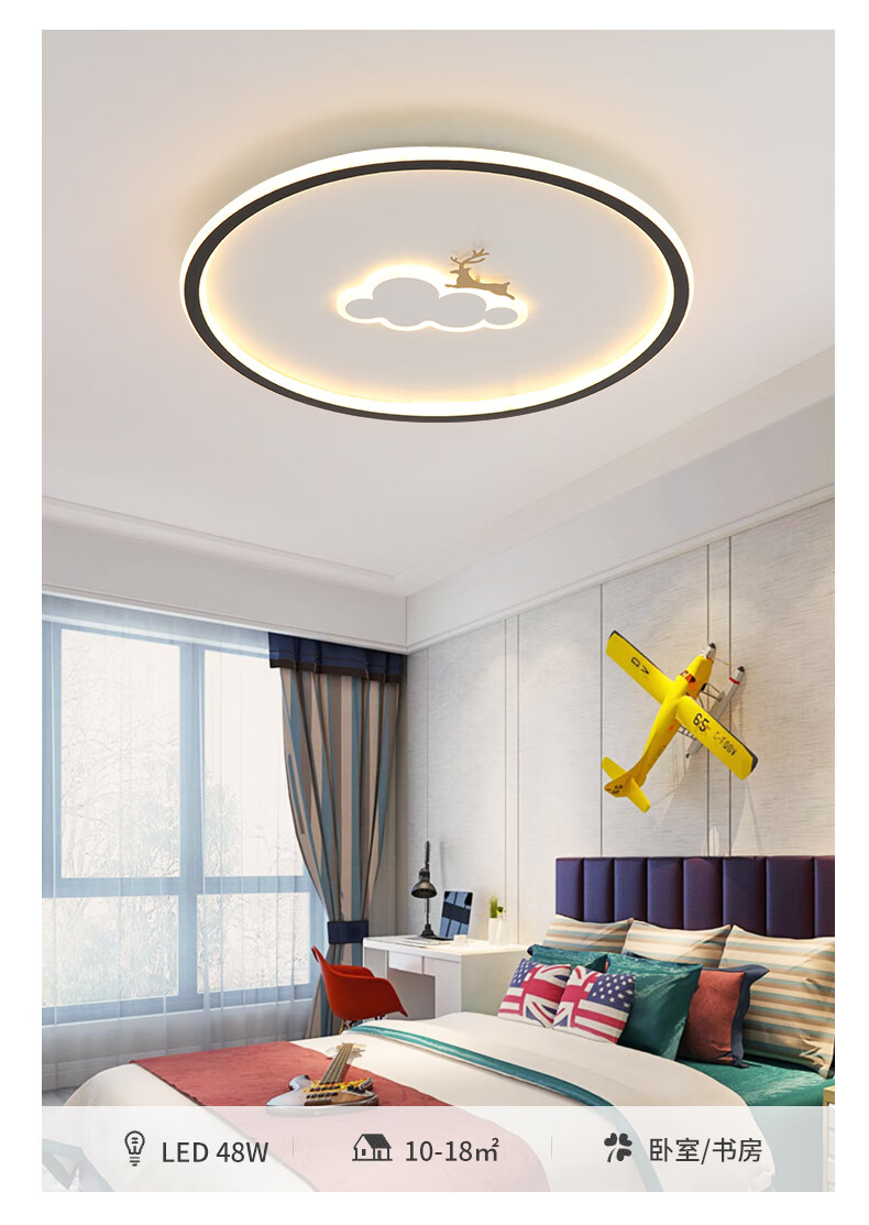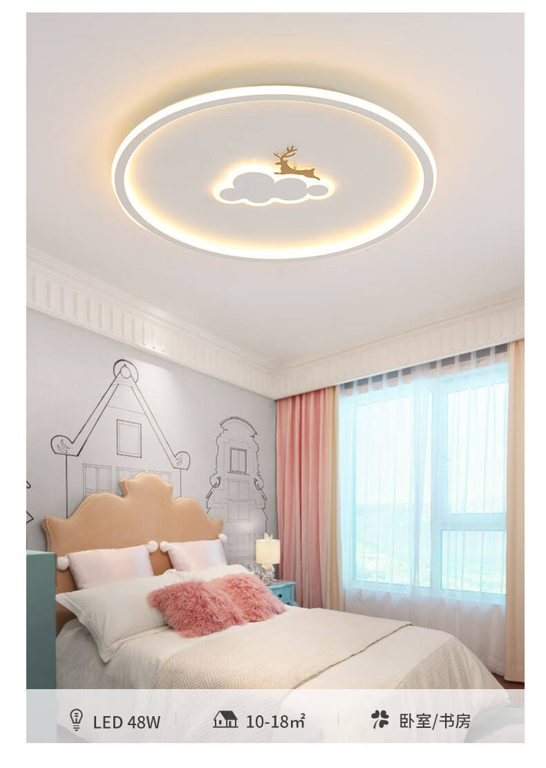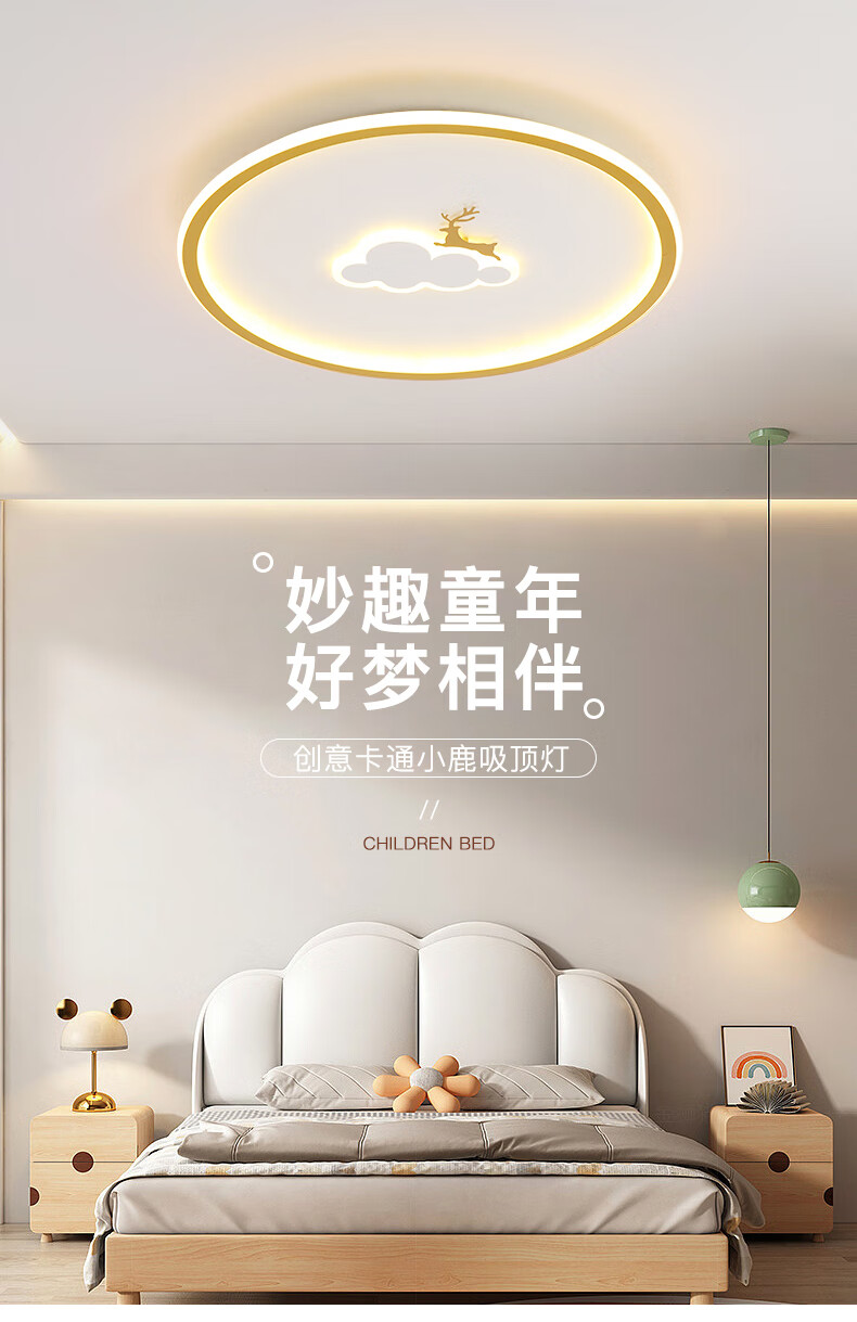 玛拓米迪儿童房间灯云朵护眼主卧室灯led吸顶灯简约现代男孩女孩新款灯具 白色云朵小鹿50CM-50瓦 LED三色调光