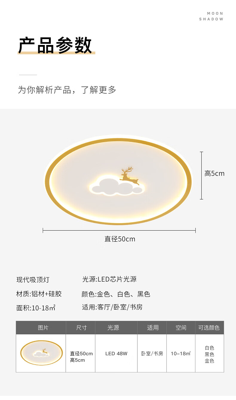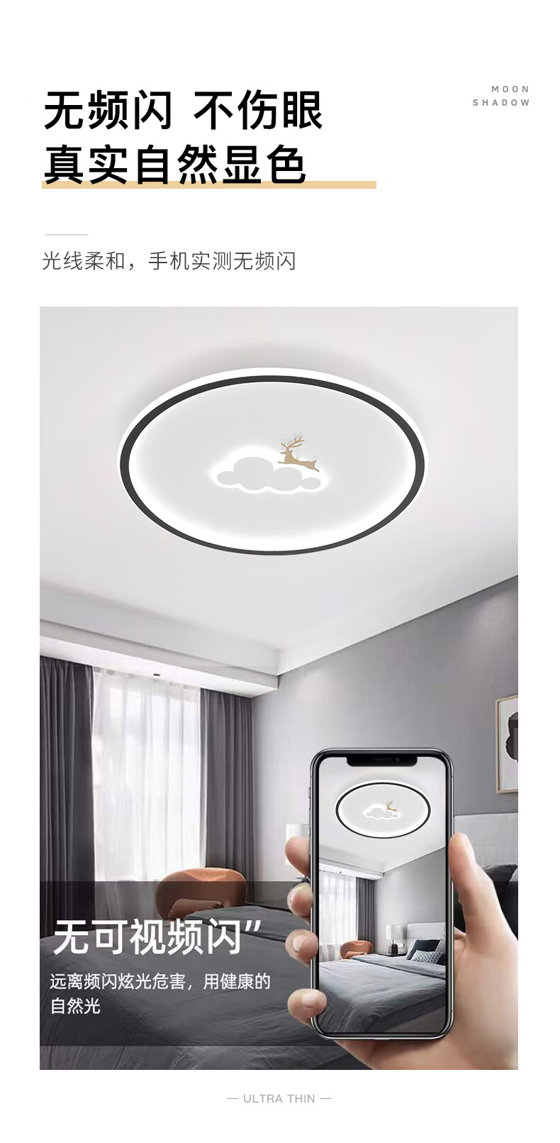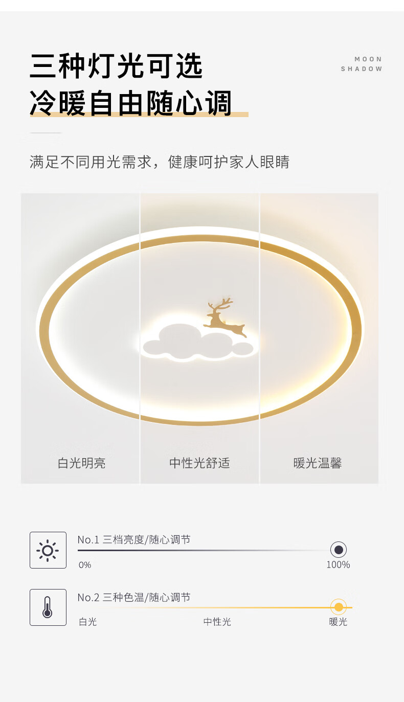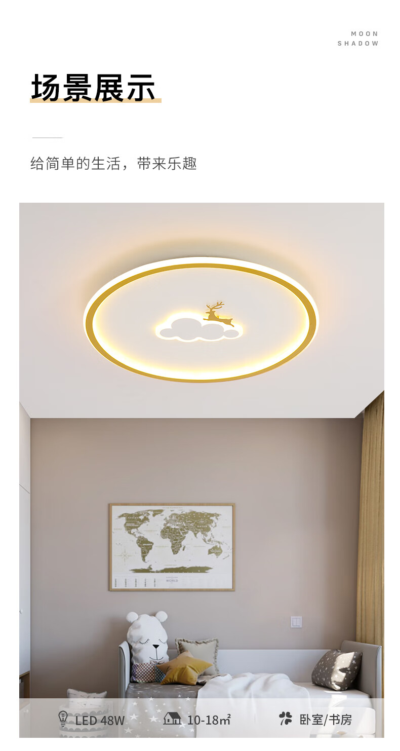 玛拓米迪儿童房间灯云朵护眼主卧室灯led吸顶灯简约现代男孩女孩新款灯具 白色云朵小鹿50CM-50瓦 LED三色调光