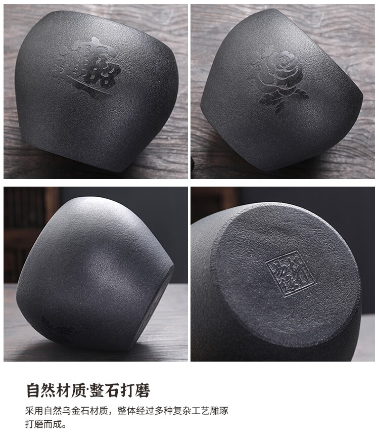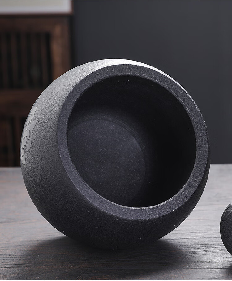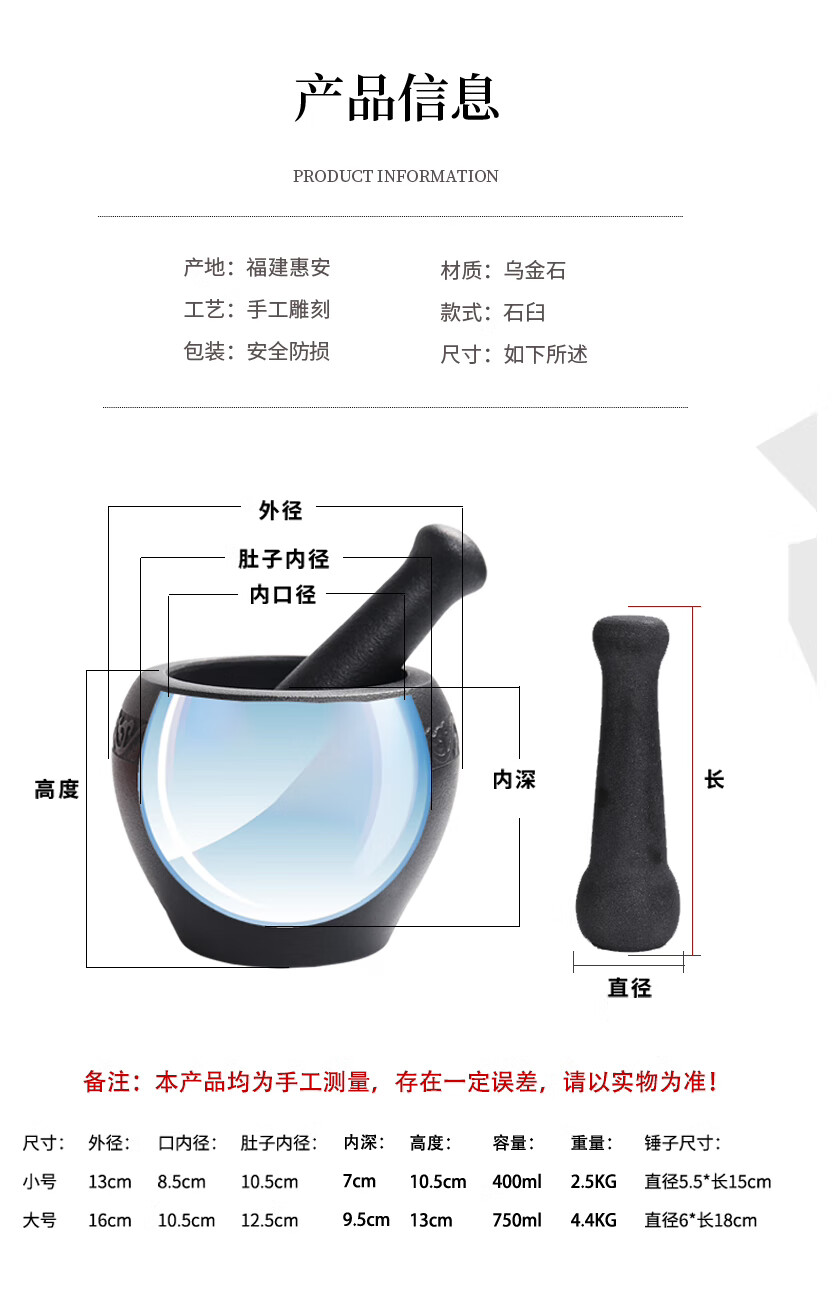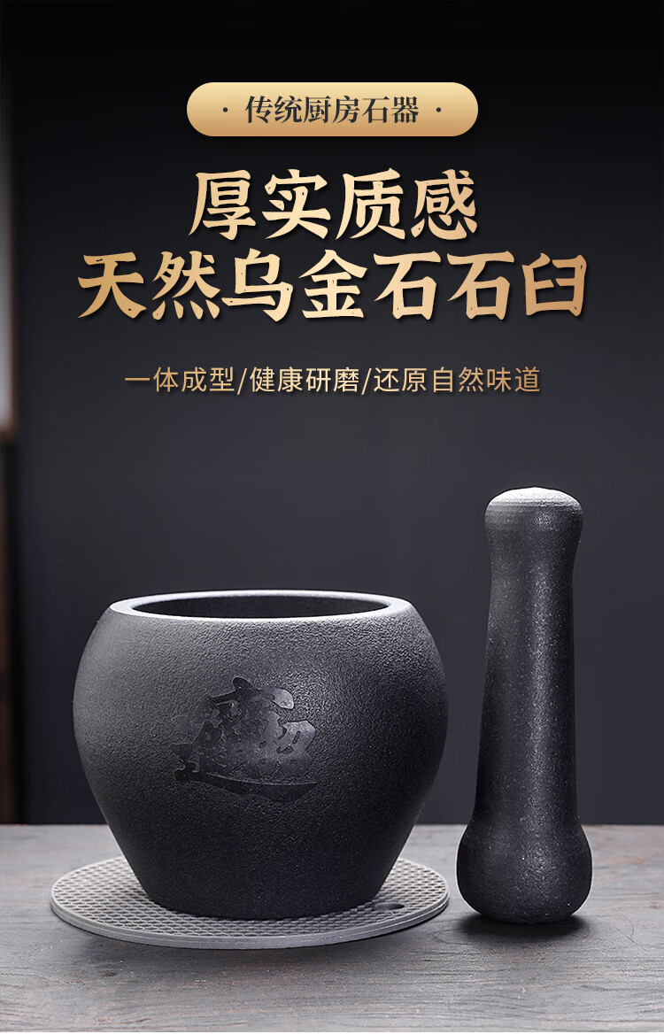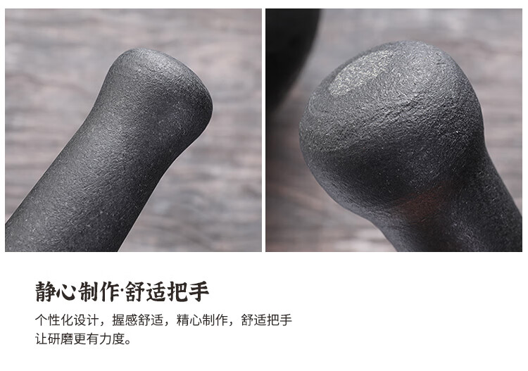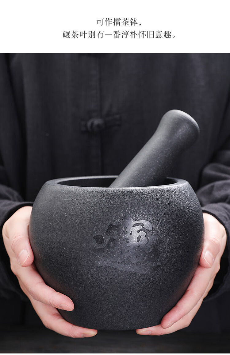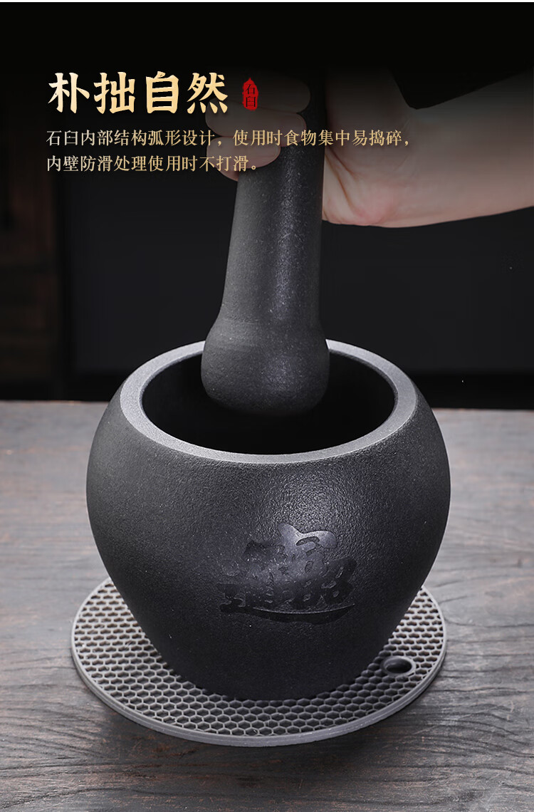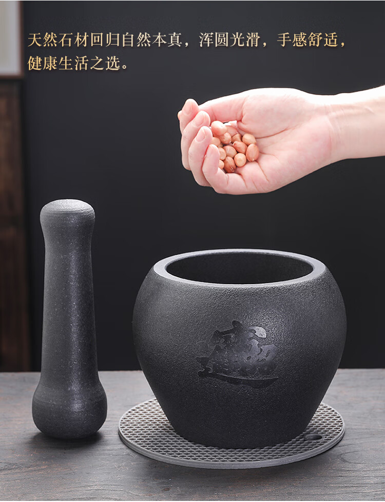 Natural black gold stone garlic pounder garlic mortar stone mortar household medicine jar pounder garlic masher baby food supplement grinder black gold stone stone mortar outer diameter 13CM (for wealth)