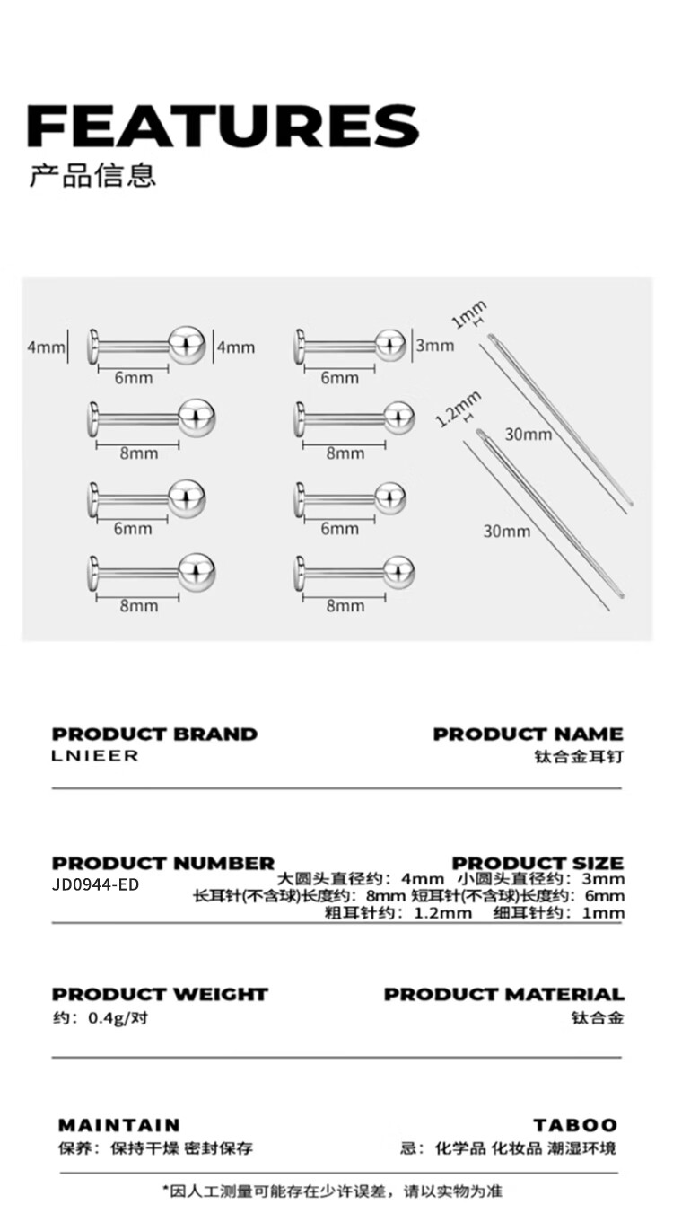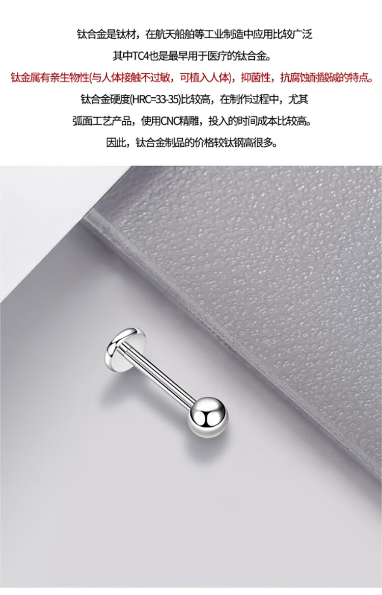 LnieerF136 Titanium Alloy Ear Hole Earrings Screw Twist Buckle Men and Women Sleeping Free Lip Nails Ear Nails Ear Bone Nails Earrings 3mm Ball 1.2 Rod Thick - Rod Length 8mm