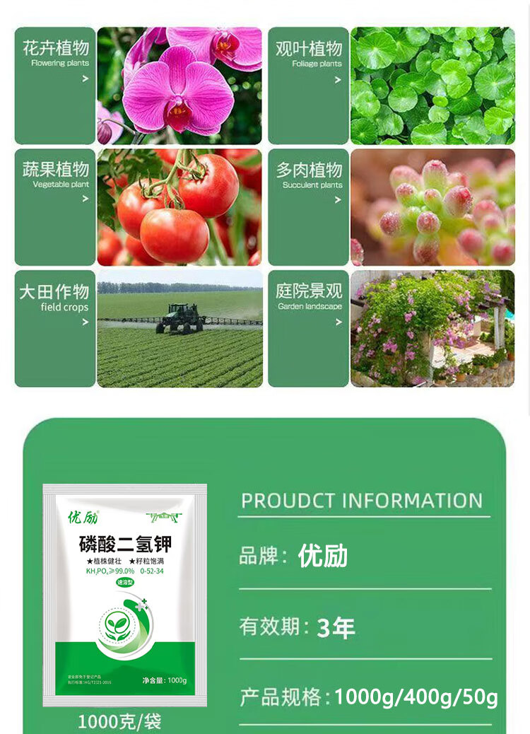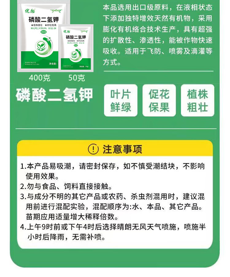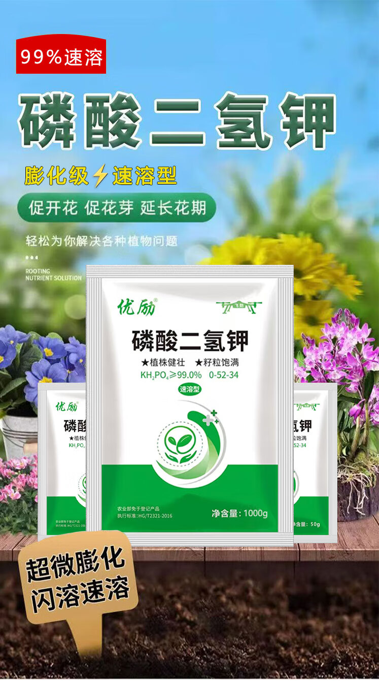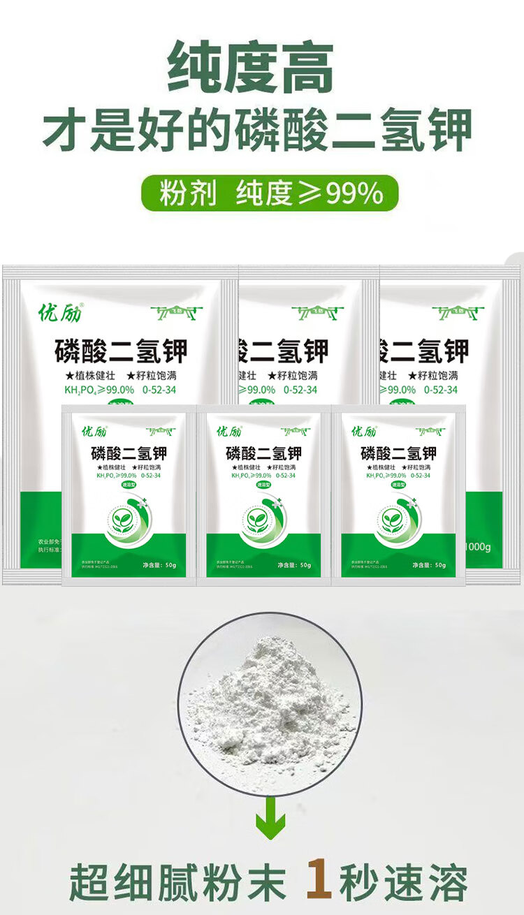 99% flash-soluble potassium dihydrogen phosphate for wheat, peanut, corn, rice, phosphorus and potassium, water-soluble fertilizer, general foliar fertilizer 50g*20 bags