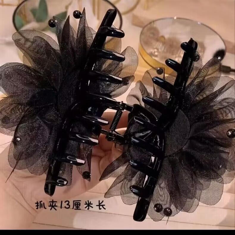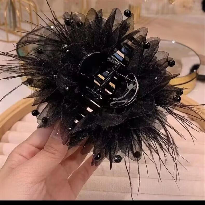 Jiao Xia Peony Flower Feather Clip 2024 New High-Looking Light Luxury Hair Clip Internet Red Temperament Shark Clip for Back of Head Hair Peony Feather Clip 11cm