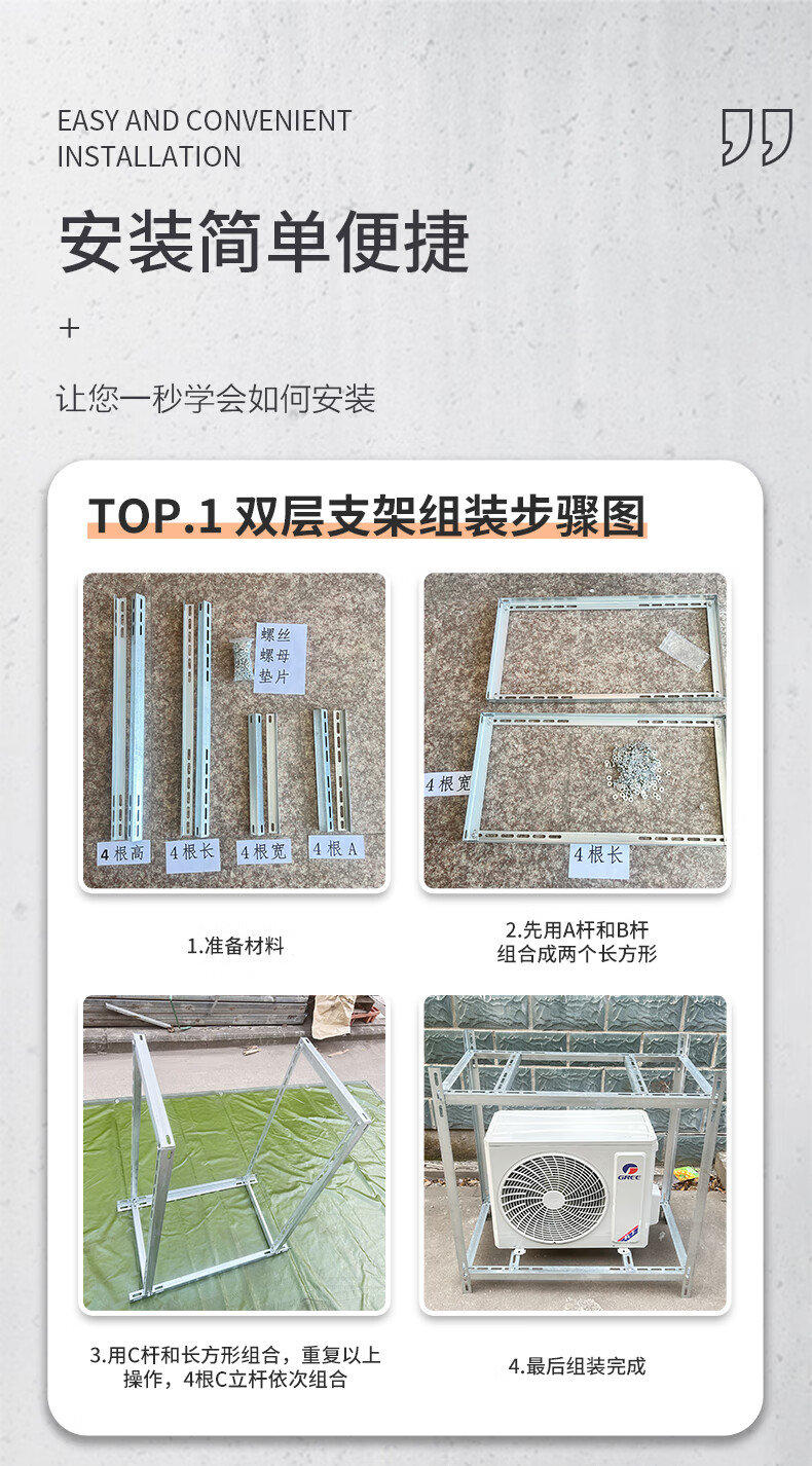 Air conditioner outdoor unit bracket 1 hp, 1.5 hp, 2 hp, 3 hp, universal double-layer, three-layer thickened floor stand to assemble multiple air conditioners, 40x40 angle steel thickened 2.3 air conditioner rack, three-layer length 950*width 490*height*1600
