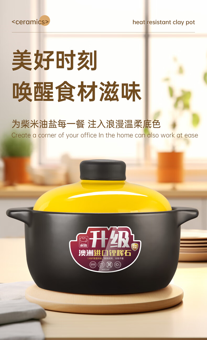 KANGSHU Olla de sopa de estilo coreano de gran capacidad a gas para el hogar, cazuela de cerámica de fuego directo con llama abierta resistente a altas temperaturas, cazuela de combustión en seco que no se agrieta, cazuela de sopa resistente al calor con tapa amarilla mejorada 4800ml