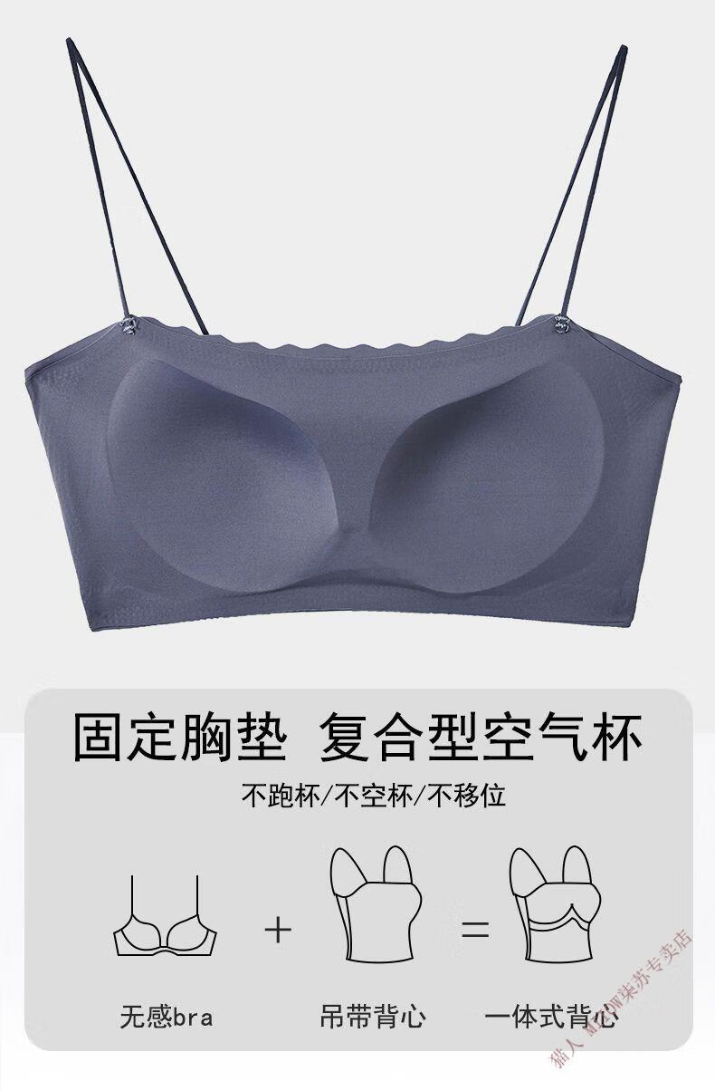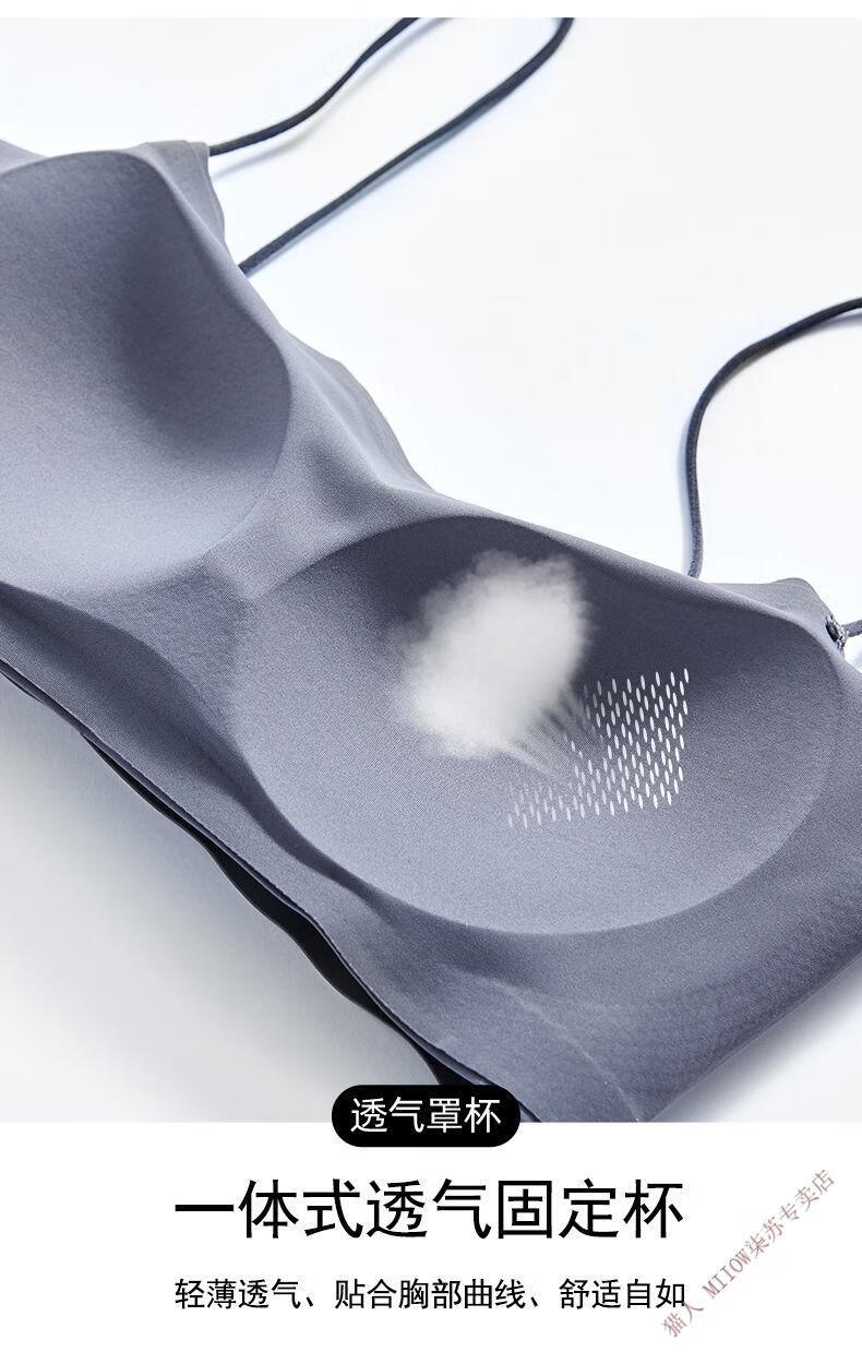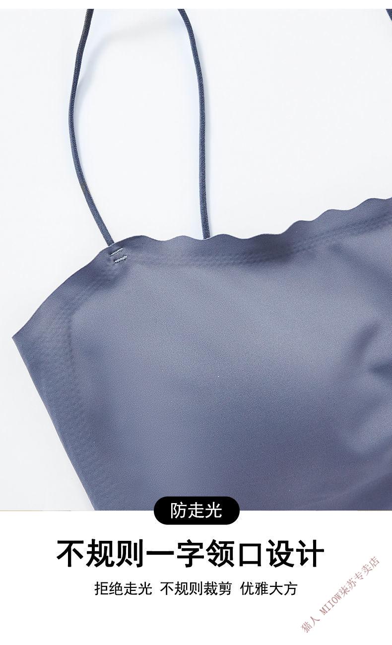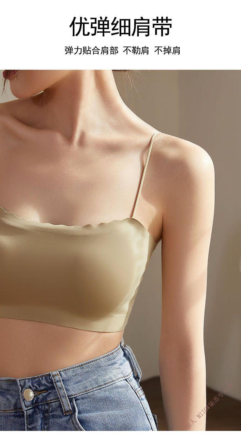 MiiOW new style seamless one-piece fixed cup ice silk breathable spaghetti straps tube top suspender underwear for female college students invisible black + leather powder M 80-95Jin Jin equals 0.5 kg