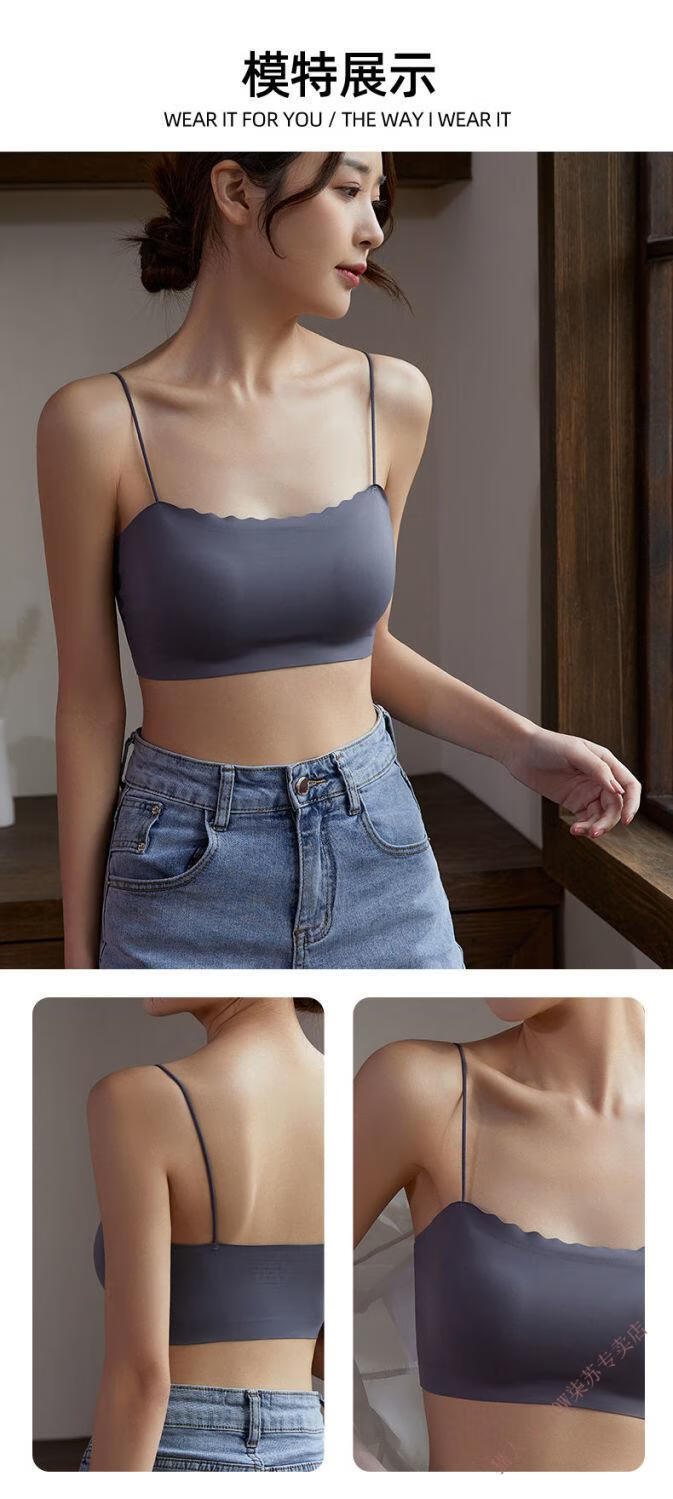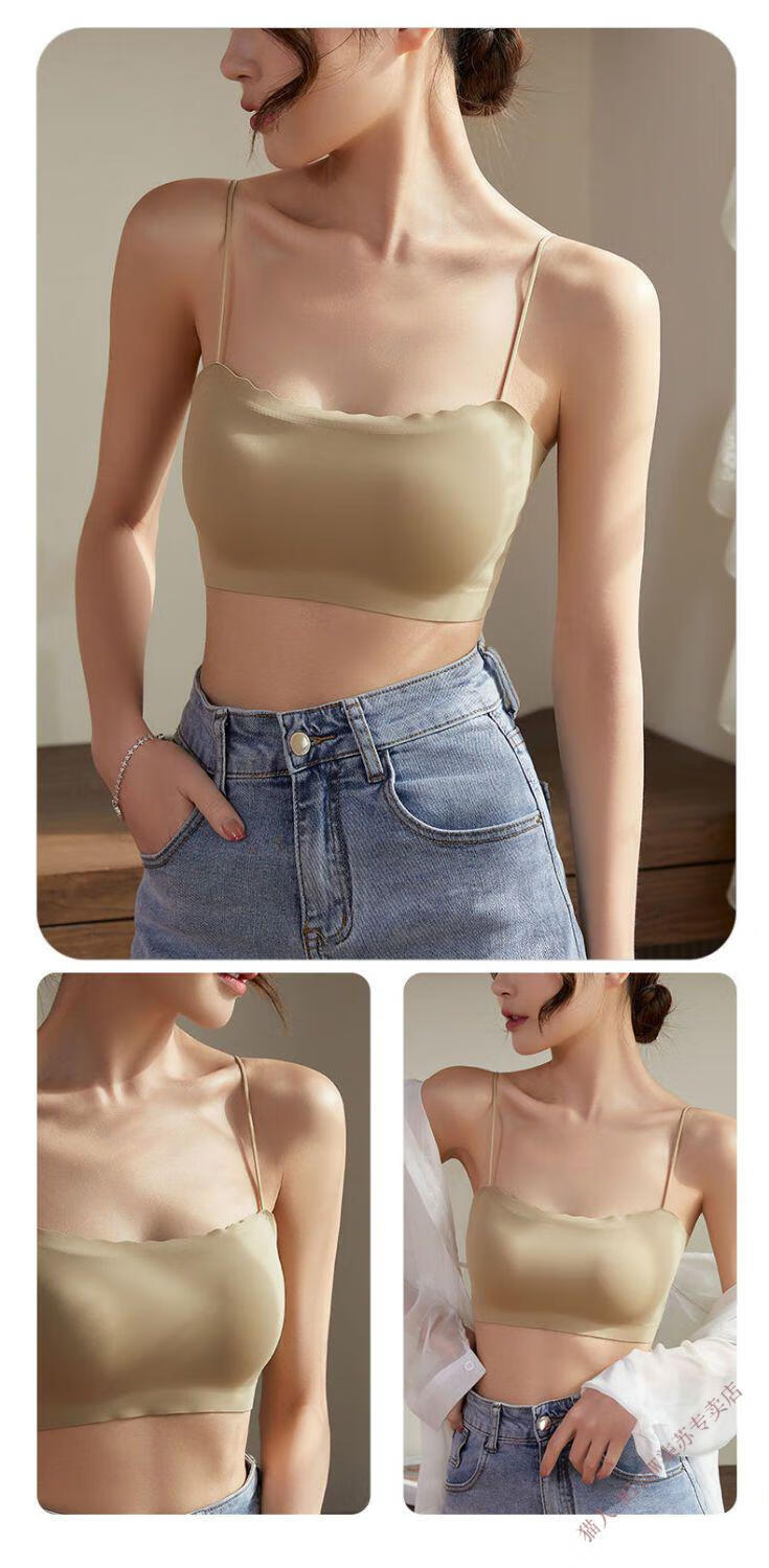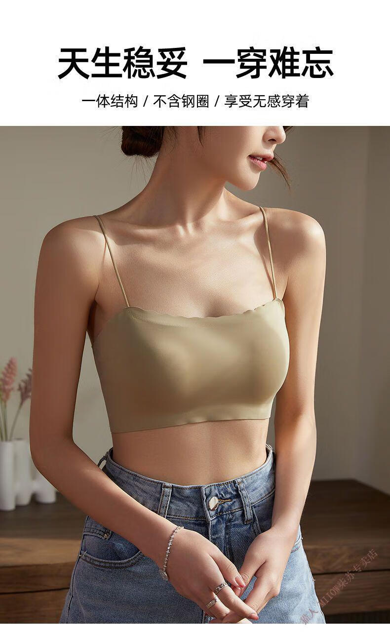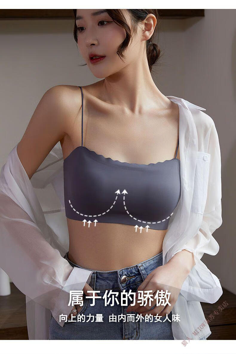 MiiOW new style seamless one-piece fixed cup ice silk breathable spaghetti straps tube top suspender underwear for female college students invisible black + leather powder M 80-95Jin Jin equals 0.5 kg