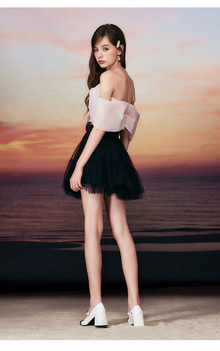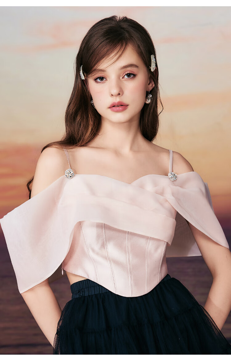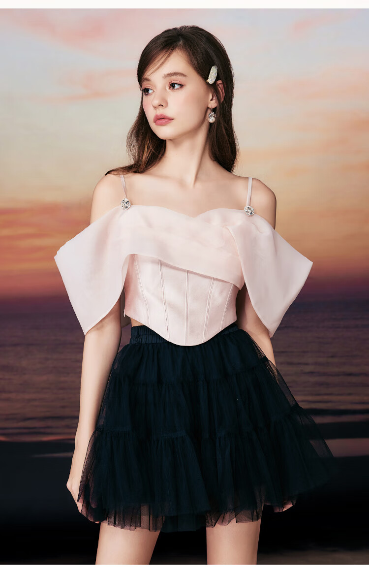 Tangli Shopping Mall Same Style Fairy on the Run Summer New Fishbone Waist Sling Top Women's Short Pink M