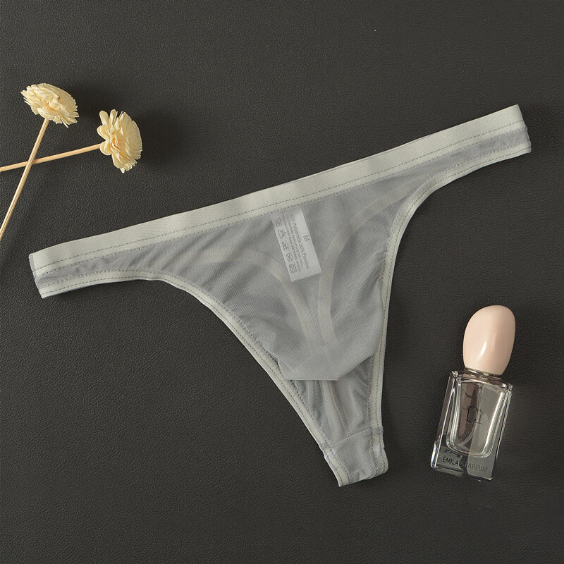 JPHZNB men's nude transparent thong thin mesh underwear tempting breathable men's youth t-pants ss black XXXL